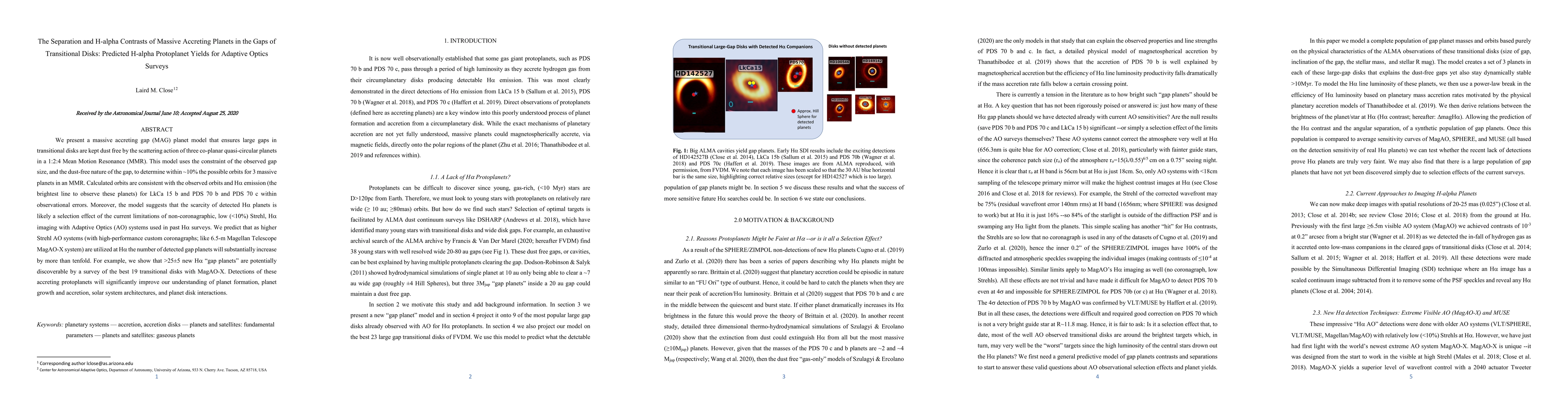 We present a massive accreting gap (MAG) planet model that ensures large gaps in transitional disks are kept dust free by the scattering action of three co-planar quasi-circular planets in a 1:2:4 Mean Motion Resonance (MMR). This model uses the constraint of the observed gap size, and the dust-free nature of the gap, to determine within ~10% the possible orbits for 3 massive planets in an MMR. Calculated orbits are consistent with the observed orbits and H-alpha emission (the brightest line to observe these planets) for LkCa 15 b and PDS 70 b and PDS 70 c within observational errors. Moreover, the model suggests that the scarcity of detected H-alpha planets is likely a selection effect of the current limitations of non-coronagraphic, low (<10%) Strehl, H-alpha imaging with Adaptive Optics (AO) systems used in past H-alpha surveys. We predict that as higher Strehl AO systems (with high-performance custom coronagraphs; like 6.5-m Magellan Telescope MagAO-X system) are utilized at H-alpha the number of detected gap planets will substantially increase by more than tenfold. For example, we show that >25 new H-alpha "gap planets" are potentially discoverable by a survey of the best 19 transitional disks with MagAO-X. Detections of these accreting protoplanets will significantly improve our understanding of planet formation, planet growth and accretion, solar system architectures, and planet disk interactions.