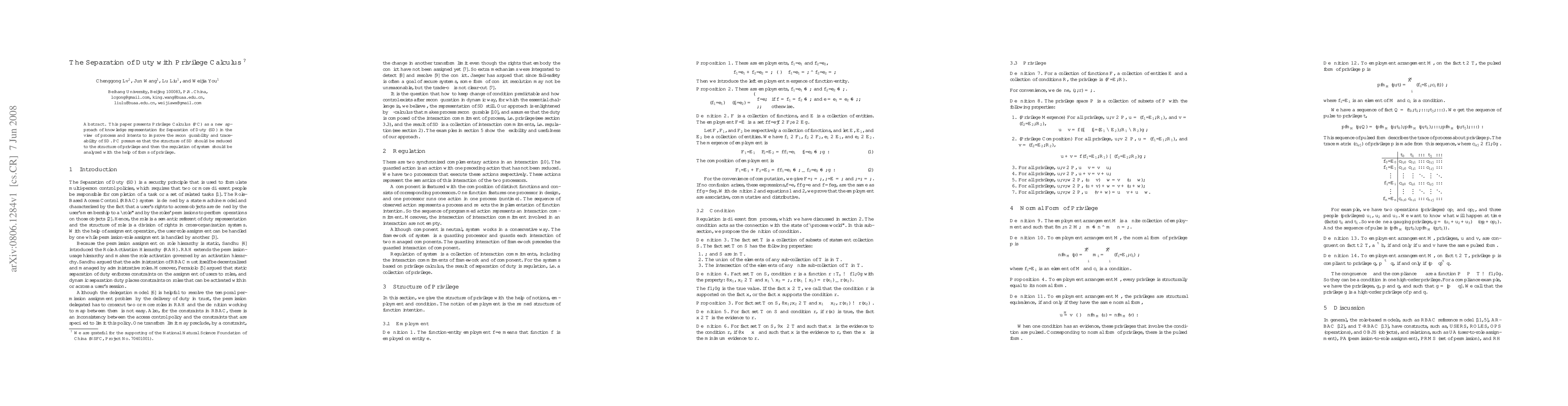 This paper introduces Privilege Calculus (PC) as a novel method for representing knowledge in Separation of Duty (SD) to enhance reconfigurability and traceability. PC simplifies SD by reducing its structure to that of privilege, enabling better regulation analysis through privilege forms.