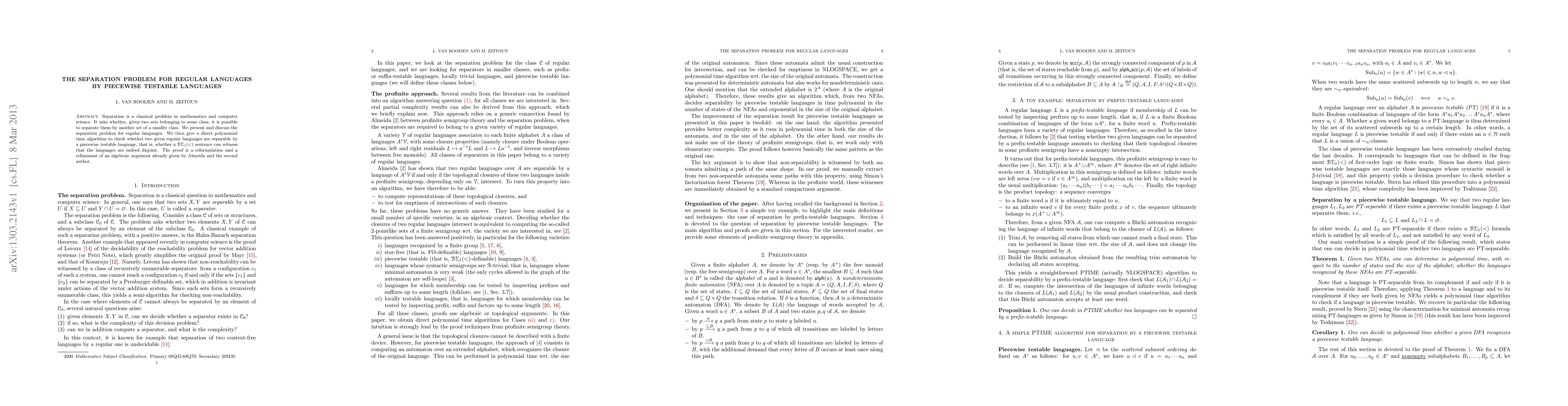 A combination of theoretical and experimental approaches was used to investigate the separation problem for regular languages.