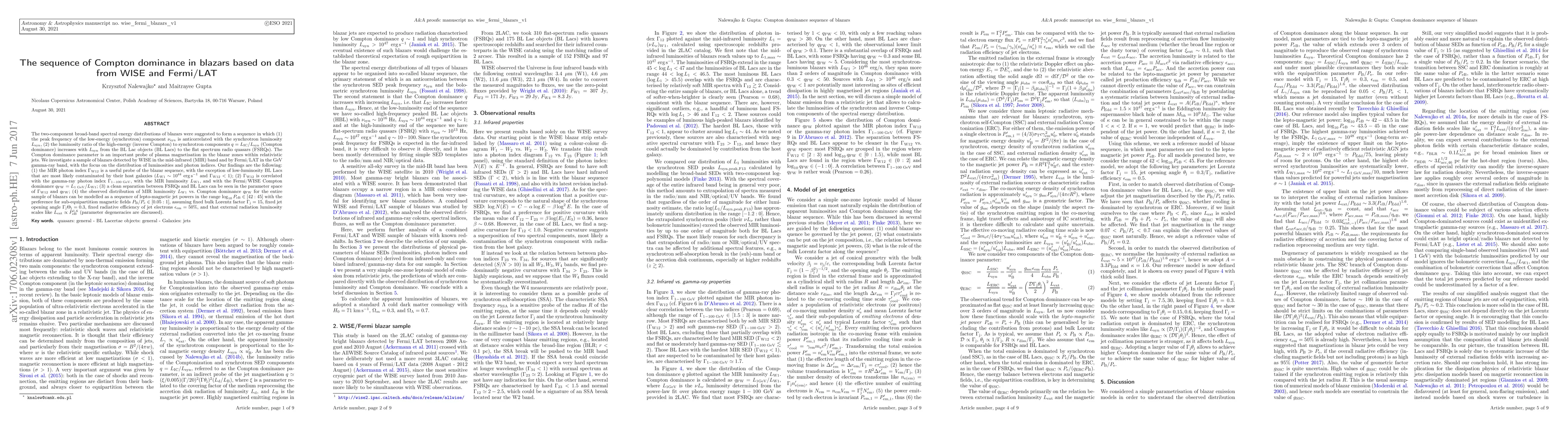 Blazars can be divided into a sequence based on their Compton dominance, which increases with luminosity from BL Lacs to flat spectrum radio quasars, and is characterized by infrared and gamma-ray photon indices.