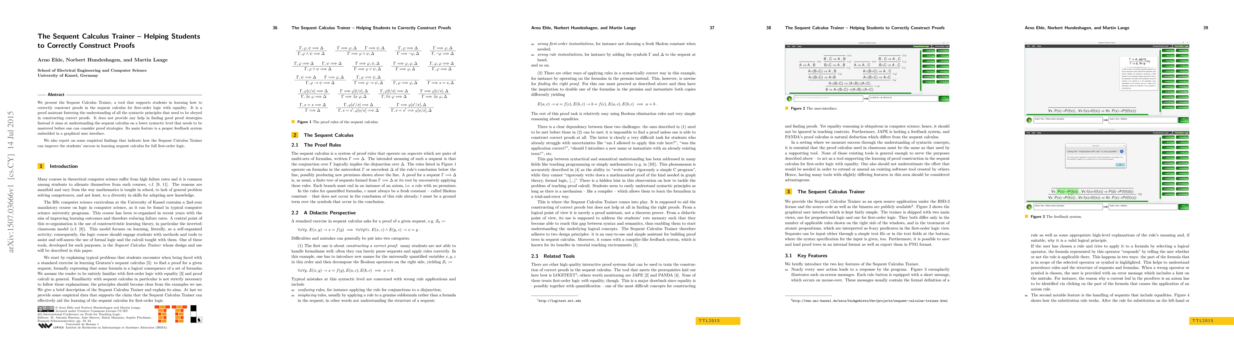 The Sequent Calculus Trainer is a tool designed to help students learn the syntactic principles of constructing proofs in first-order logic with equality, providing feedback through a graphical interface and showing empirical evidence of improved learning outcomes. It focuses on mastering the sequent calculus without aiding in strategic proof development.