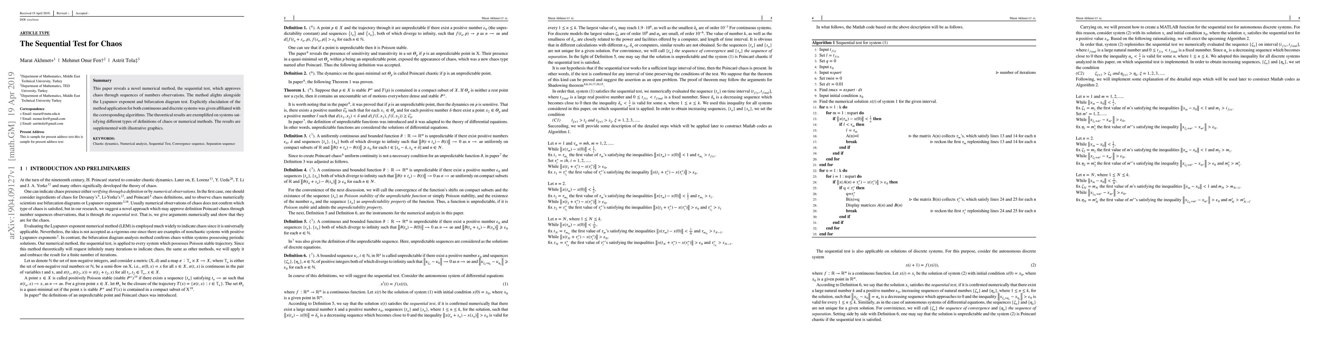 This paper introduces a new numerical method called the sequential test to confirm chaos via sequence observations, complementing existing methods like the Lyapunov exponent and bifurcation diagram test. The method is demonstrated on various continuous and discrete systems with accompanying algorithms and illustrative graphics.
