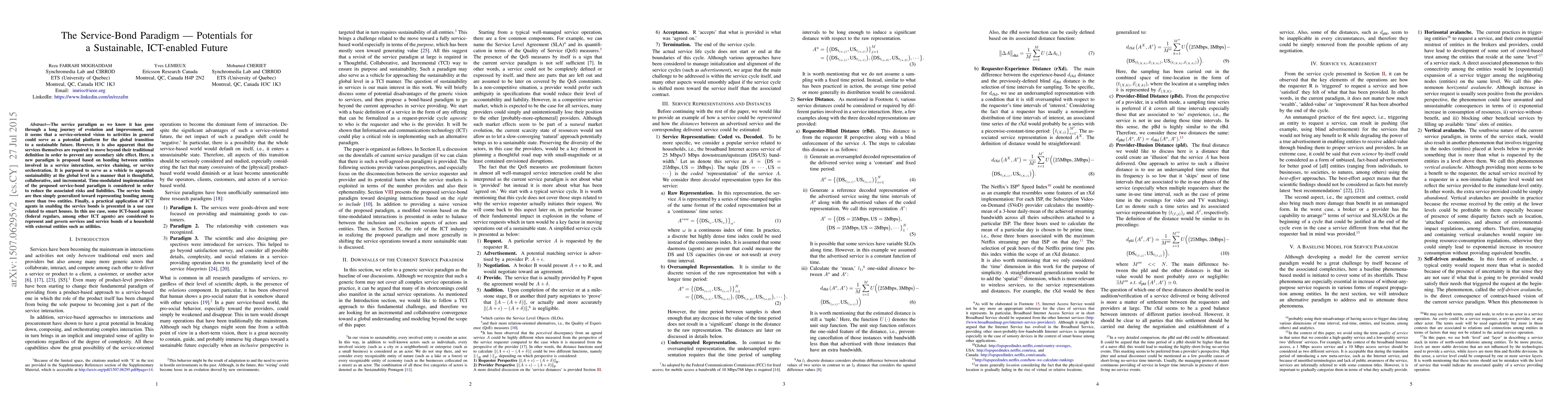 The paper proposes a new service-bond paradigm to foster a sustainable future through ICT-enabled service interactions, emphasizing collaborative and incremental approaches. The use of ICT agents in smart houses demonstrates practical application of the paradigm.