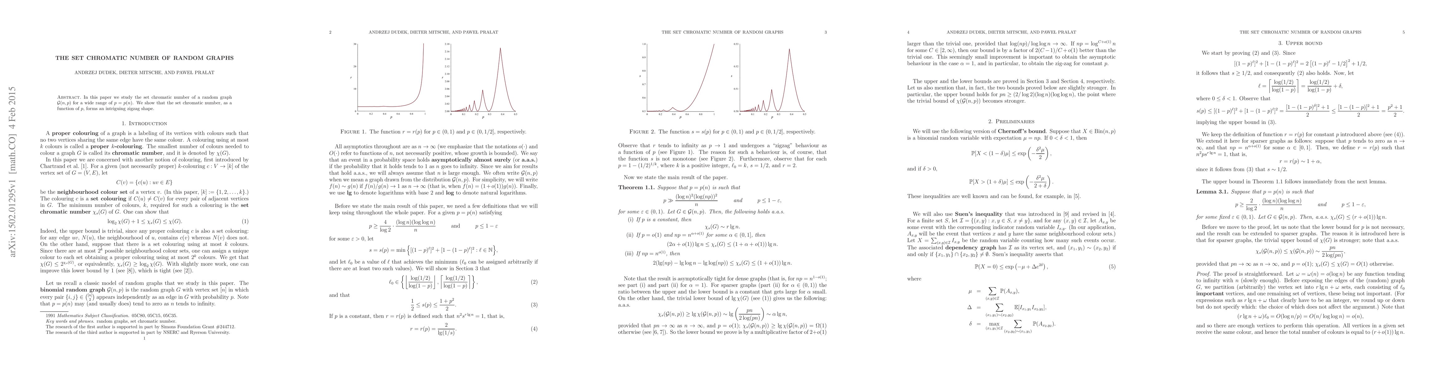 A study on random graphs $G(n,p)$ reveals that the set chromatic number forms a zigzag shape as a function of probability $p$, with key findings related to its behavior at different values of $p$.