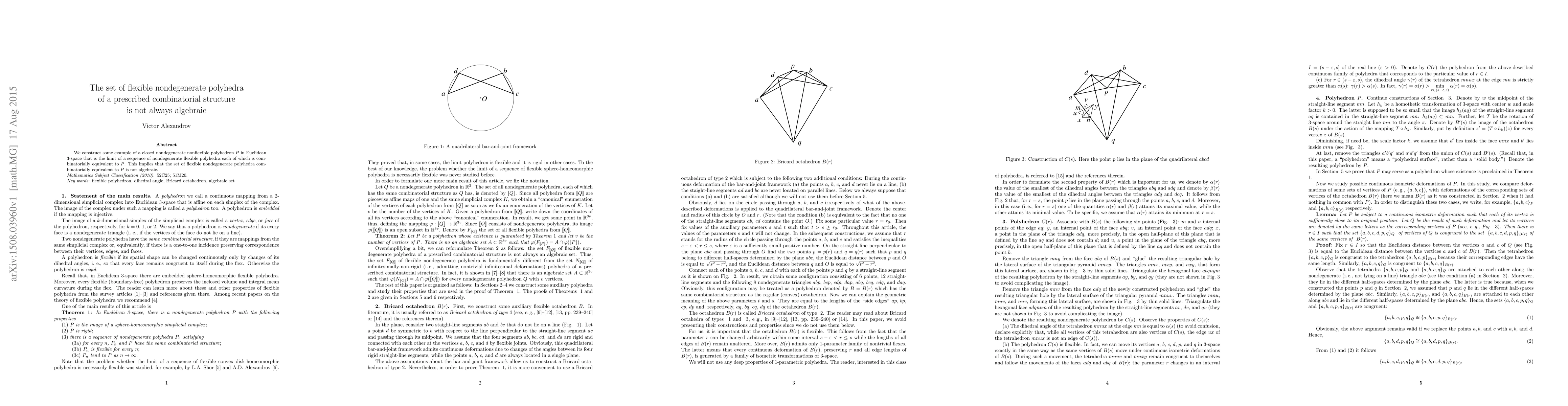 Researchers show that a set of flexible polyhedra with certain properties is not always algebraic, finding an example in 3D space where the limit of flexible polyhedra is a rigid structure.