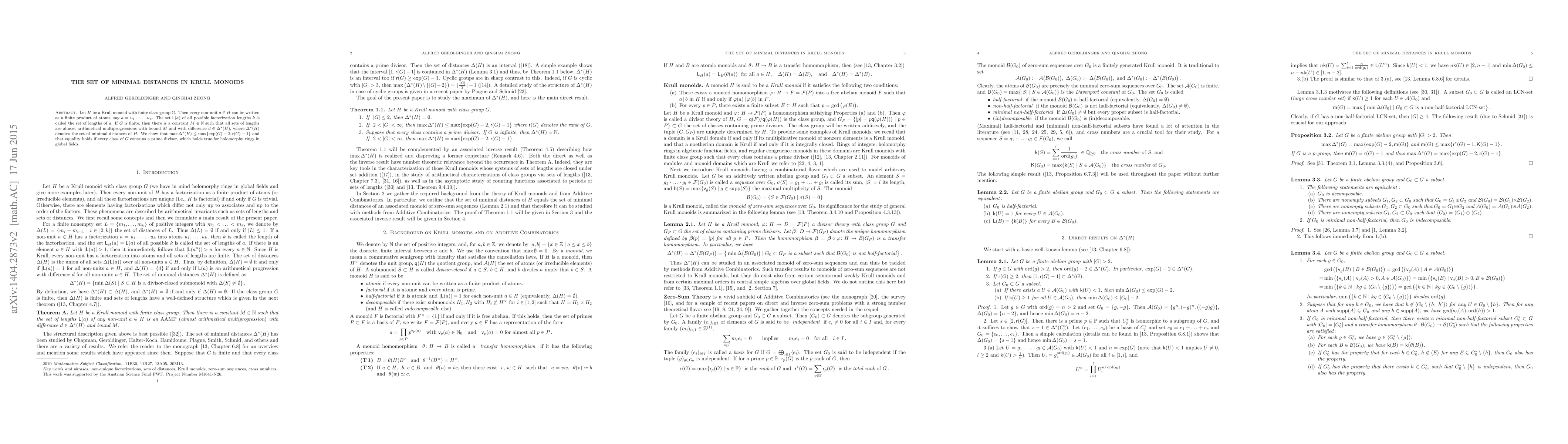 Let $H$ be a Krull monoid with finite class group $G$. Then every non-unit $a \in H$ can be written as a finite product of atoms, say $a=u_1 \cdot \ldots \cdot u_k$. The set $\mathsf L (a)$ of all possible factorization lengths $k$ is called the set of lengths of $a$. If $G$ is finite, then there is a constant $M \in \mathbb N$ such that all sets of lengths are almost arithmetical multiprogressions with bound $M$ and with difference $d \in \Delta^* (H)$, where $\Delta^* (H)$ denotes the set of minimal distances of $H$. We show that $\max \Delta^* (H) \le \max \{\exp (G)-2, \mathsf r (G)-1\}$ and that equality holds if every class of $G$ contains a prime divisor, which holds true for holomorphy rings in global fields.