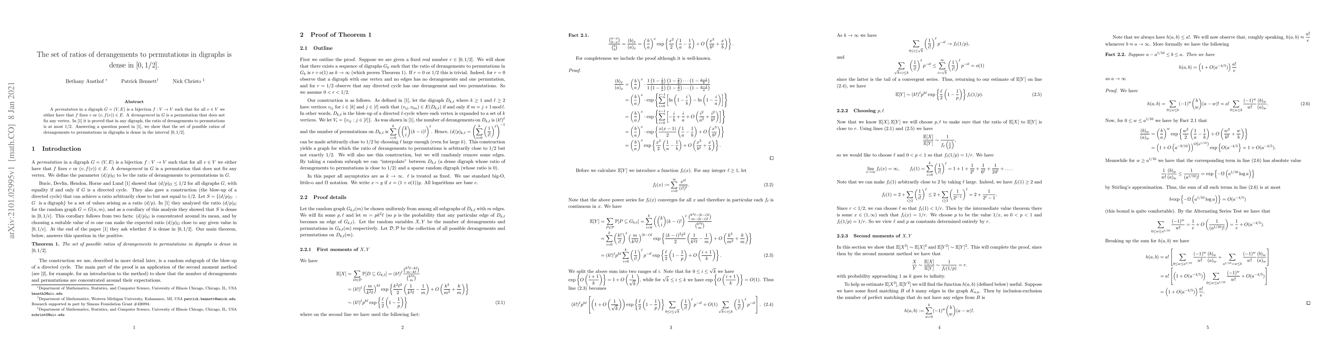 This paper demonstrates that the ratio of derangements to permutations in digraphs can take on any value within the interval $[0, 1/2]$. It confirms that this ratio is at most $1/2$, answering a question from a previous study.