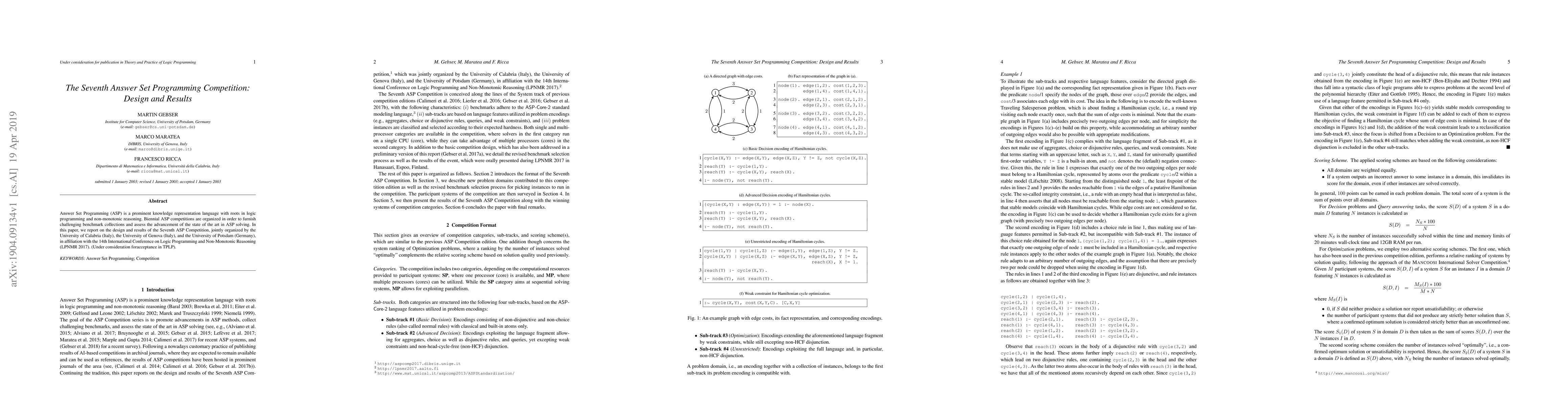 This paper details the design and outcomes of the Seventh Answer Set Programming Competition, organized by Italian and German universities, aimed at evaluating advancements in ASP solving through benchmark collections. Results highlight the competition's role in advancing the state of the art in ASP.
