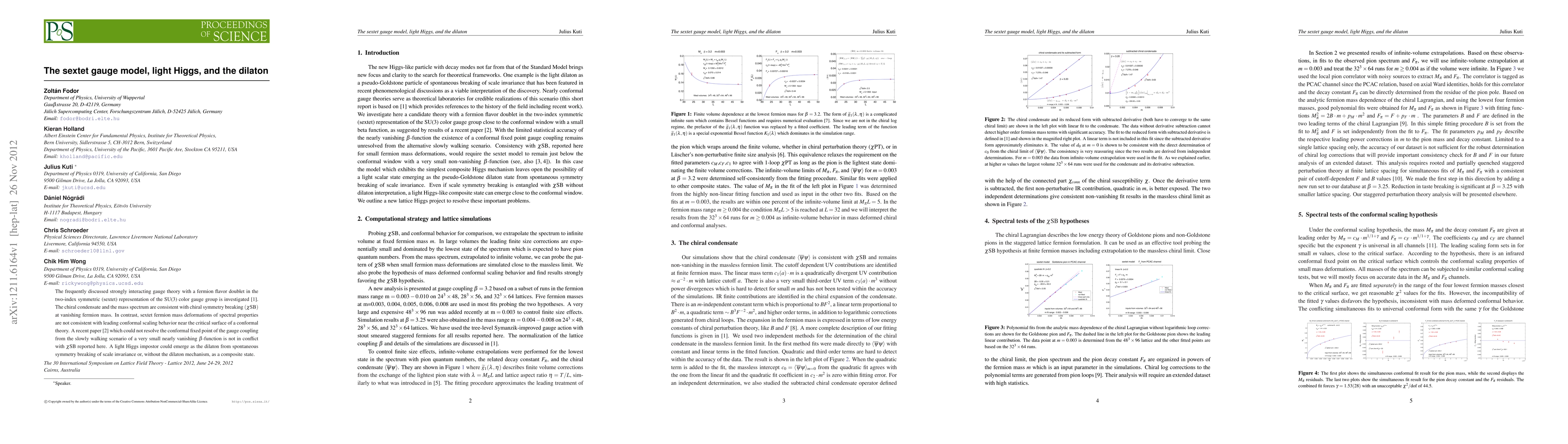 This paper explores a strongly interacting gauge theory with sextet fermions, finding consistent chiral symmetry breaking but inconsistent spectral properties with conformal scaling. It also discusses the potential emergence of a light Higgs impostor as a dilaton from spontaneous symmetry breaking of scale invariance.