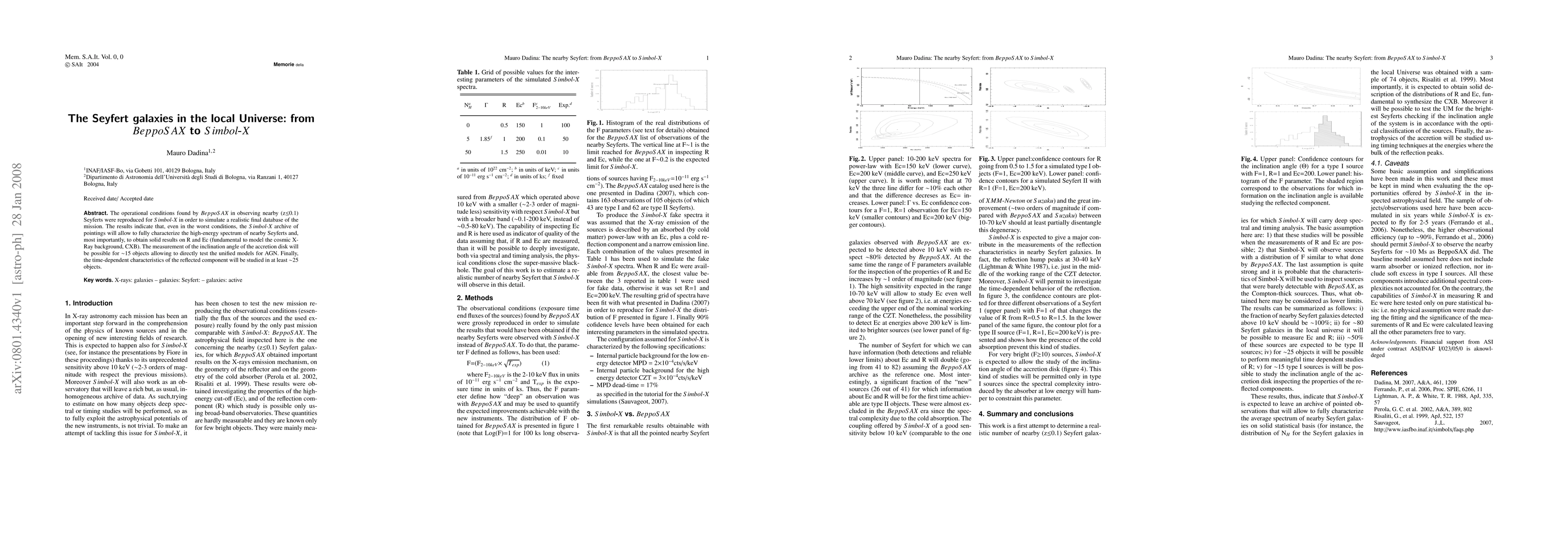 The operational conditions found by $BeppoSAX$ in observing nearby (z$\leq$0.1) Seyferts were reproduced for $Simbol$-$X$ in order to simulate a realistic final database of the mission. The results indicate that, even in the worst conditions, the $Simbol$-$X$ archive of pointings will allow to fully characterize the high-energy spectrum of nearby Seyferts and, most importantly, to obtain solid results on R and Ec (fundamental to model the cosmic X-Ray background, CXB). The measurement of the inclination angle of the accretion disk will be possible for $\sim$15 objects allowing to directly test the unified models for AGN. Finally, the time-dependent characteristics of the reflected component will be studied in at least $\sim$25 objects.
