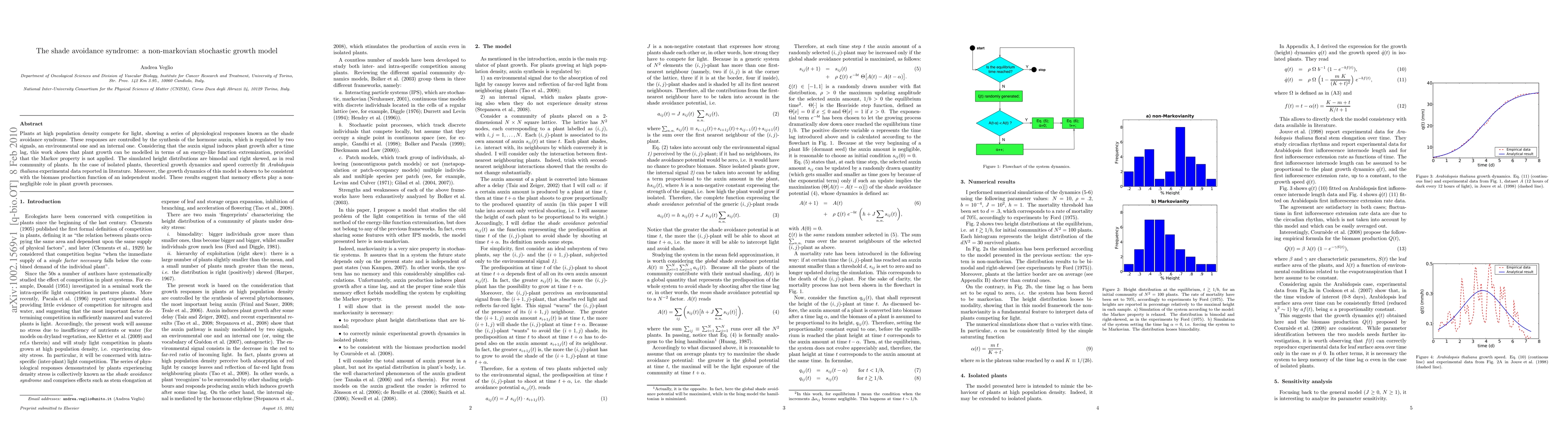 Plants at high population density compete for light, showing a series of physiological responses known as the shade avoidance syndrome. These responses are controlled by the synthesis of the hormone auxin, which is regulated by two signals, an environmental one and an internal one. Considering that the auxin signal induces plant growth after a time lag, this work shows that plant growth can be modelled in terms of an energy-like function extremization, provided that the Markov property is not applied. The simulated height distributions are bimodal and right skewed, as in real community of plants. In the case of isolated plants, the theoretical expressions for the growth dynamics and the growth speed excellently fit experimental data for Arabidopsis thaliana. Moreover, the growth dynamics of this model is shown to be consistent with the biomass production function of an independent model. These results suggest that memory effects play a non-negligible role in plant growth processes.