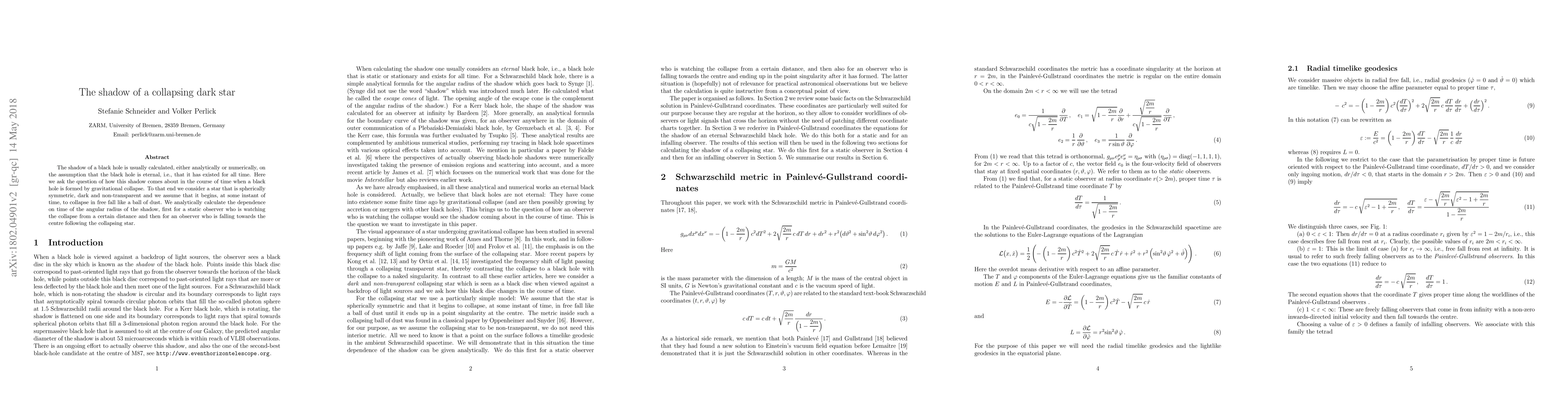 The research analytically calculates the shadow of a collapsing dark star for both static and infalling observers using a simplified model of a spherically symmetric, dark, and non-transparent star collapsing like a ball of dust.