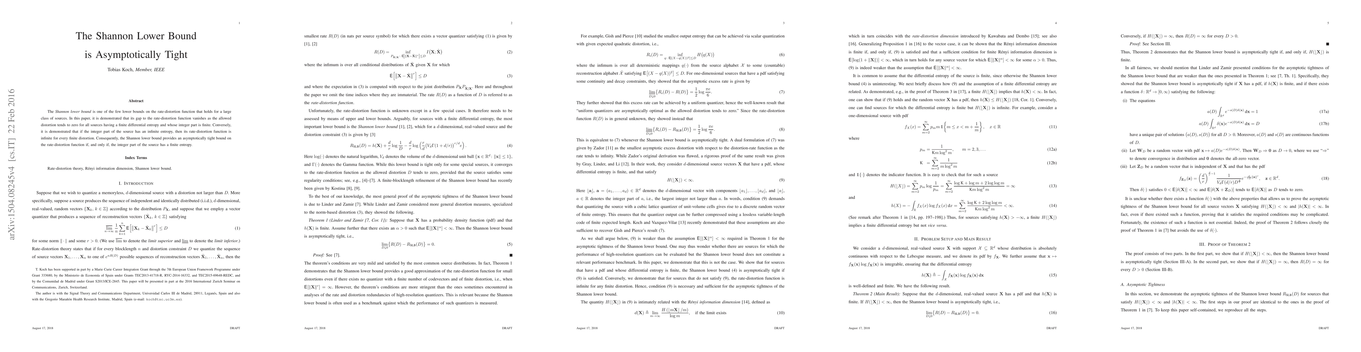 This paper proves that Shannon's lower bound for rate-distortion function becomes asymptotically tight as distortion approaches zero for sources with finite differential entropy and finite entropy of their integer part. Conversely, it shows that if a source's integer part has infinite entropy, its rate-distortion function remains infinite even at finite distortions, establishing a direct link between source entropy and the tightness of Shannon's bound.