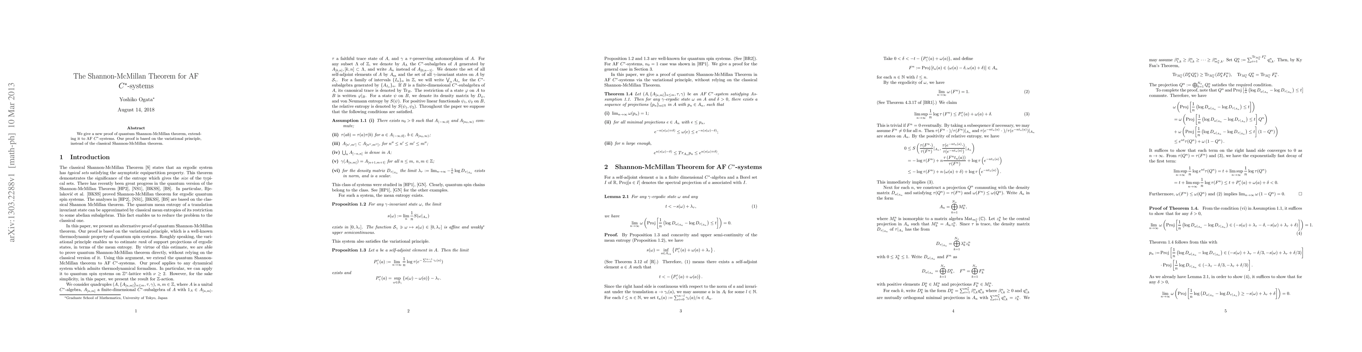 We give a new proof of quantum Shannon-McMillan theorem, extending it to AF $C^*$-systems. Our proof is based on the variational principle, instead of the classical Shannon-McMillan theorem.