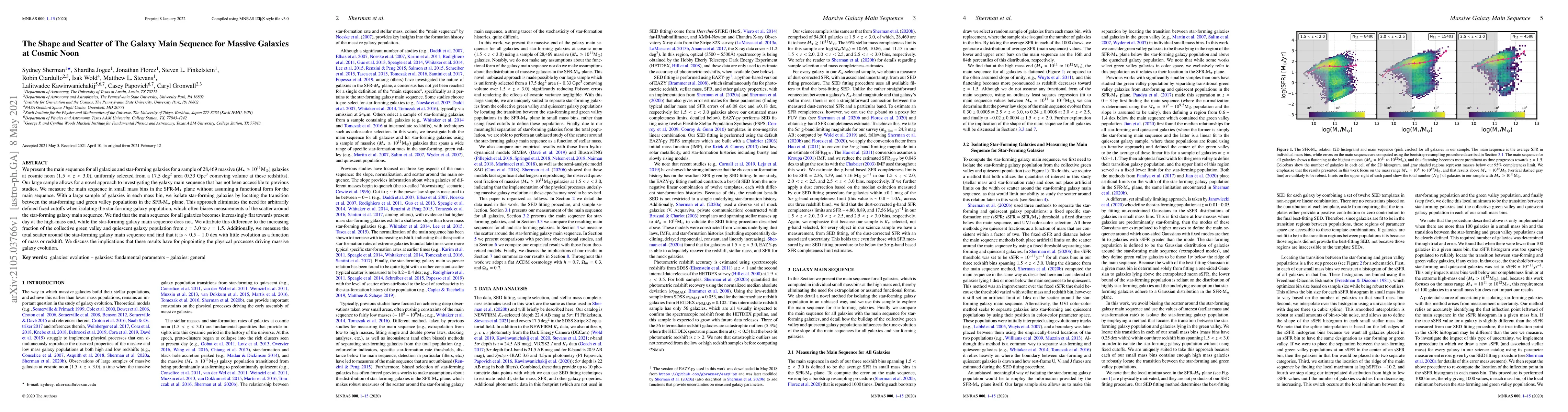 This study investigates the galaxy main sequence for massive galaxies at cosmic noon, finding that the main sequence flattens over time for all galaxies but remains stable for star-forming galaxies. The research reveals a total scatter of 0.5-1.0 dex around the star-forming galaxy main sequence, with little evolution, suggesting distinct evolutionary paths for different galaxy populations.