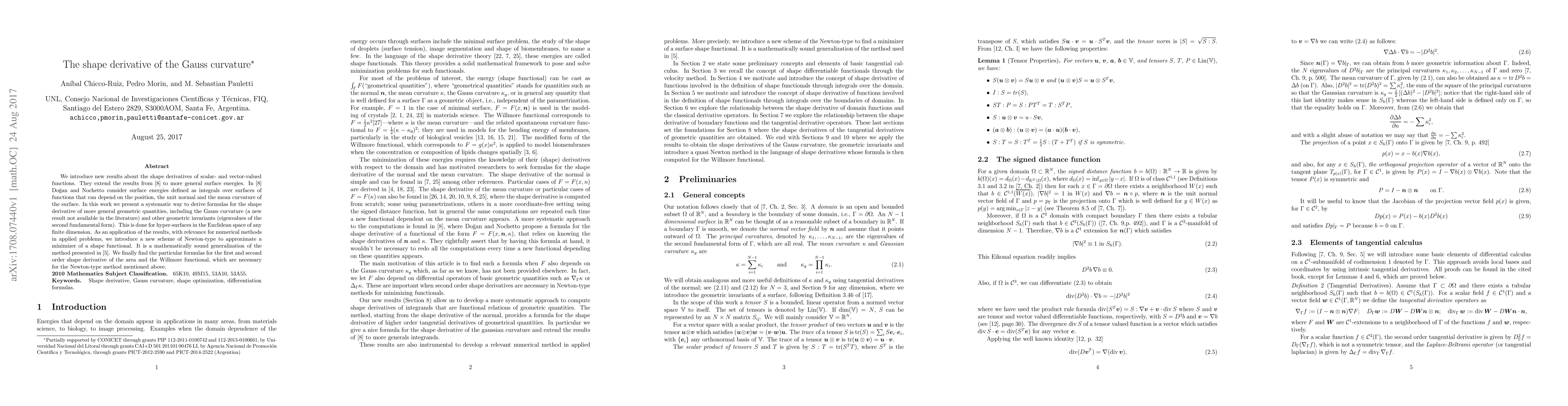 Researchers developed new methods to calculate shape derivatives of surface energies, including the Gauss curvature, and introduced a Newton-type scheme for approximating minimizers of shape functionals.