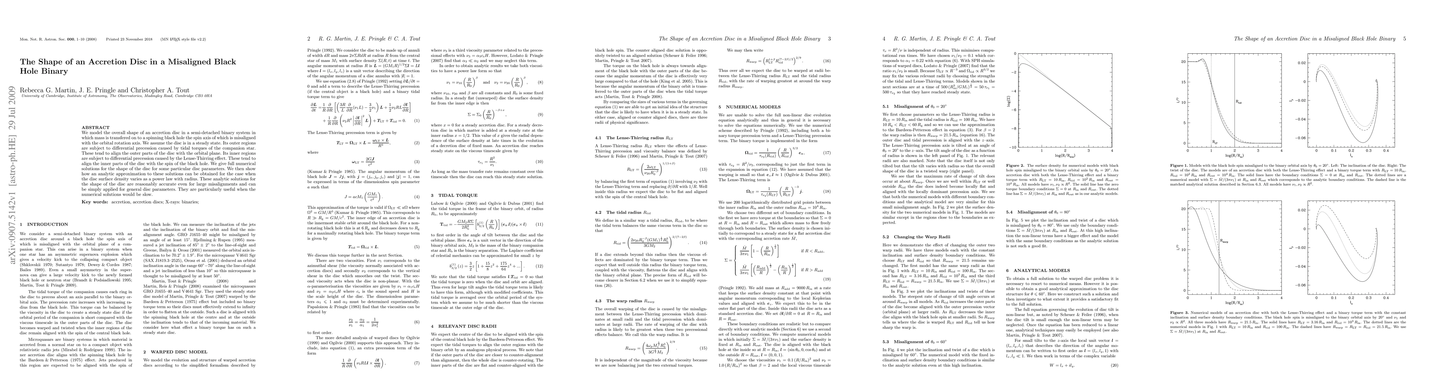 The research models the shape of an accretion disc in a semi-detached binary system with a spinning black hole whose spin axis is misaligned with the orbital rotation axis, assuming a steady state with differential precession caused by tidal torques and the Lense-Thirring effect.