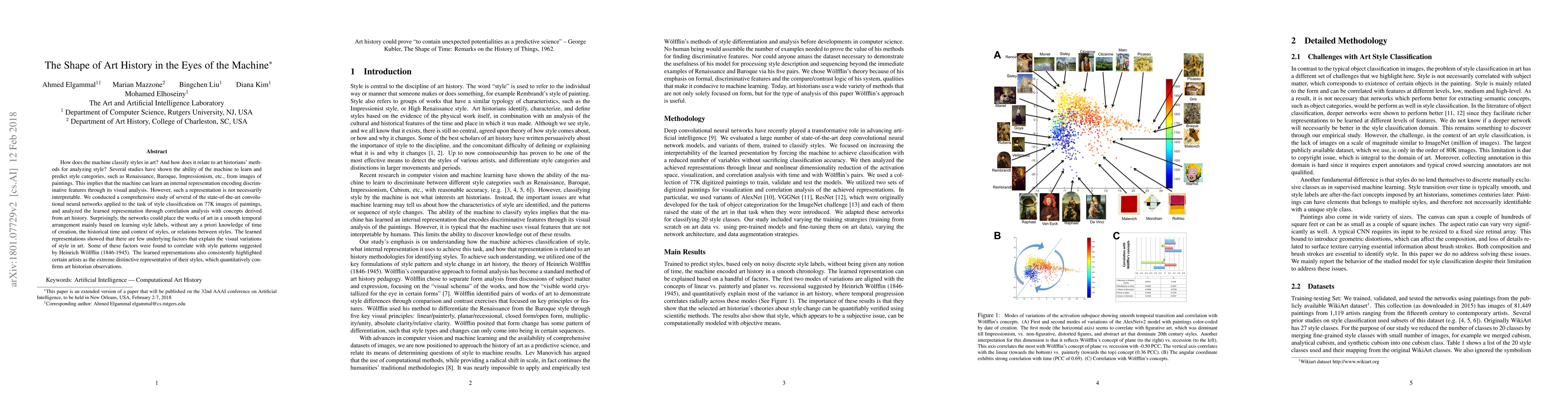 This study investigates how convolutional neural networks classify art styles and compares machine learning outcomes with traditional art historians' methods. The networks successfully arranged artworks in a temporal sequence based on style, revealing underlying factors correlating with historical style patterns, thus supporting some art historian observations.
