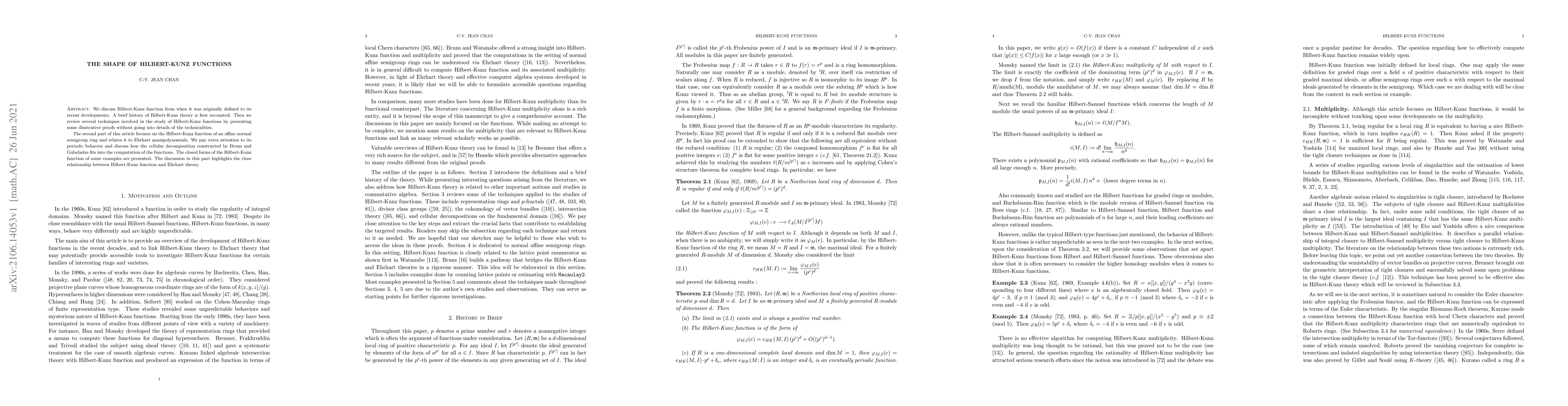 This paper provides a historical overview of the Hilbert-Kunz function, reviewing its development and techniques. It explores the Hilbert-Kunz function in affine normal semigroup rings, linking it to Ehrhart quasipolynomials and highlighting its periodic behavior, with a focus on the cellular decomposition method.