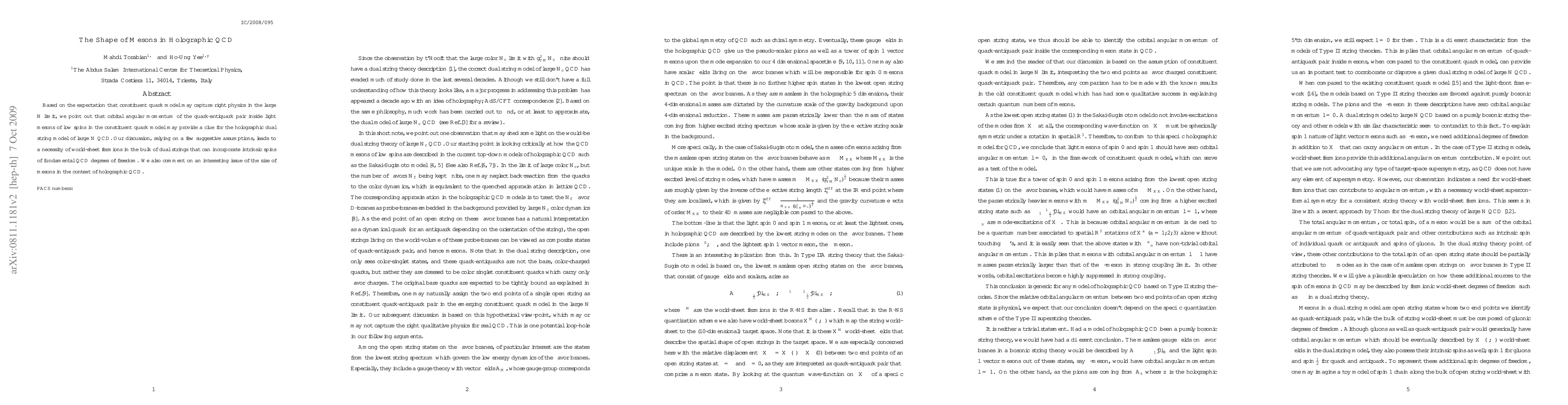 Based on the expectation that constituent quark model may capture right physics in the large N limit, we point out that orbital angular momentum of the quark-antiquark pair inside light mesons of low spins in the constituent quark model may provide a clue for the holographic dual string model of large N QCD. Our discussion, relying on a few suggestive assumptions, leads to a necessity of world-sheet fermions in the bulk of dual strings that can incorporate intrinsic spins of fundamental QCD degrees of freedom. We also comment on an interesting issue of the size of mesons in the context of holographic QCD.