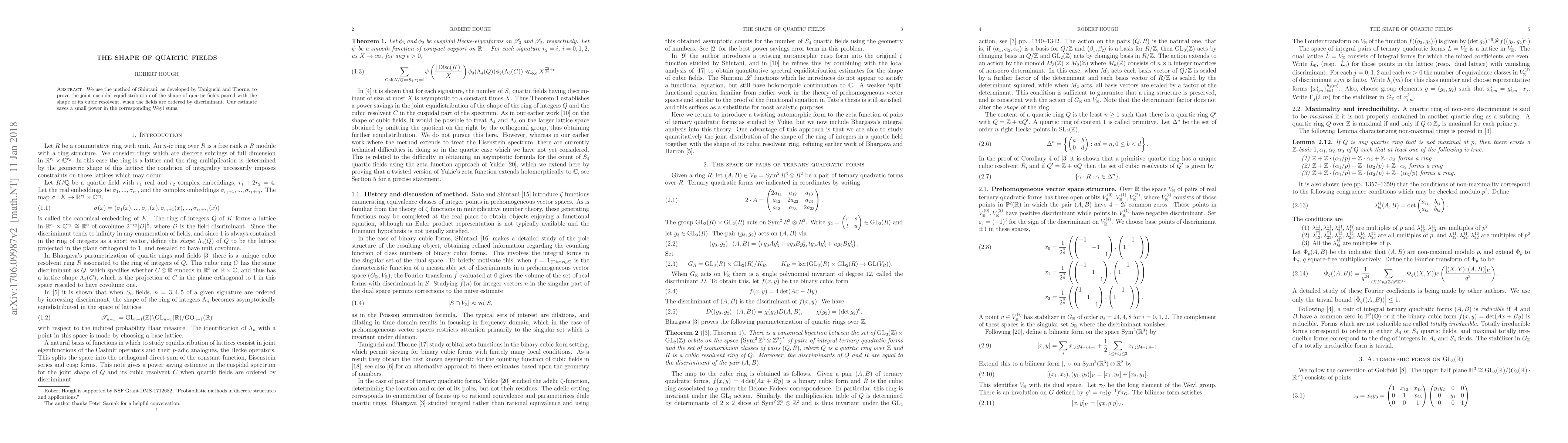 We use the method of Shintani, as developed by Taniguchi and Thorne, to prove the joint cuspidal equidistribution of the shape of quartic fields paired with the shape of its cubic resolvent, when the fields are ordered by discriminant. Our estimate saves a small power in the corresponding Weyl sums.