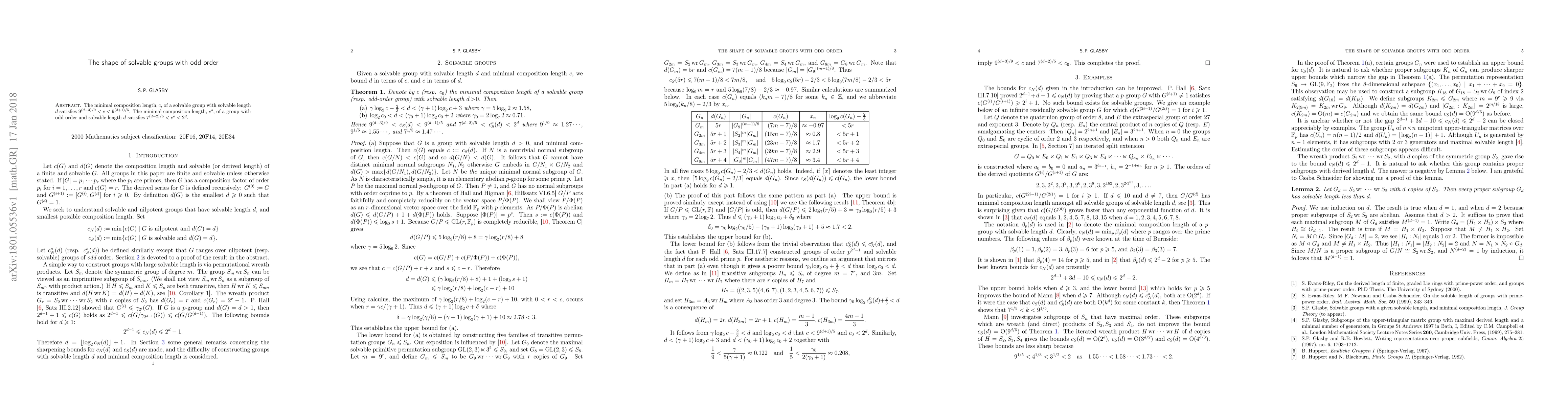 We prove that the minimal composition length, $c$, of a solvable group with solvable length $d$ satisfies $9^{(d-3)/9}< c< 9^{(d+1)/5}$, and the minimal composition length, $c^o$, of a group with odd order and solvable length $d$ satisfies $7^{(d-2)/5}< c^o< 2^d$.