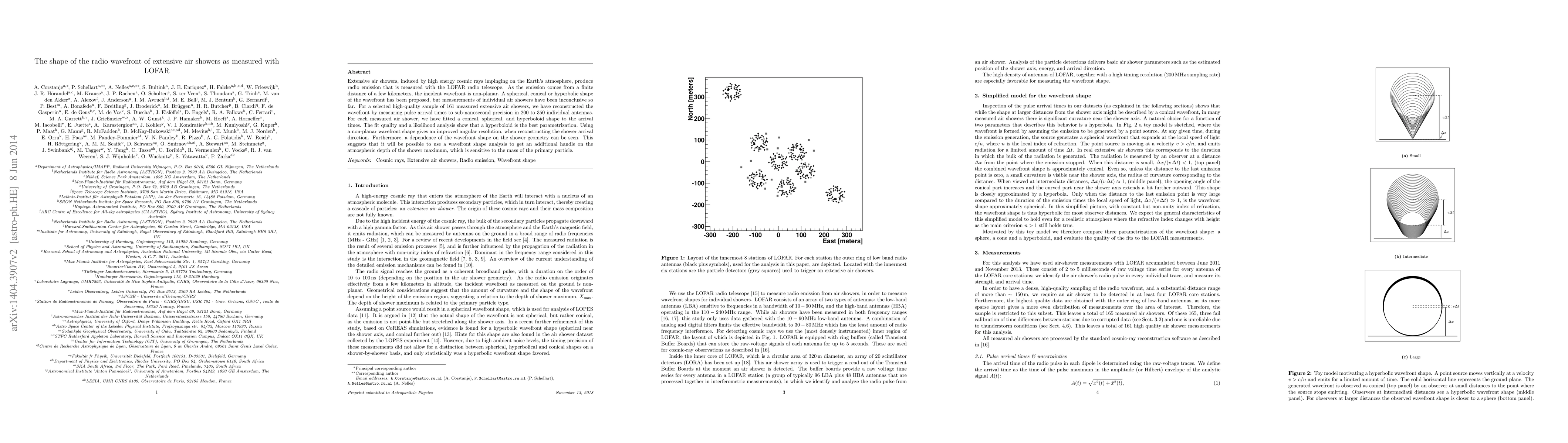 This paper reports on the use of LOFAR to measure the shape of radio wavefronts from extensive air showers, finding that a hyperboloid shape best fits the data, improving angular resolution and suggesting potential for inferring the shower maximum depth and primary particle mass.