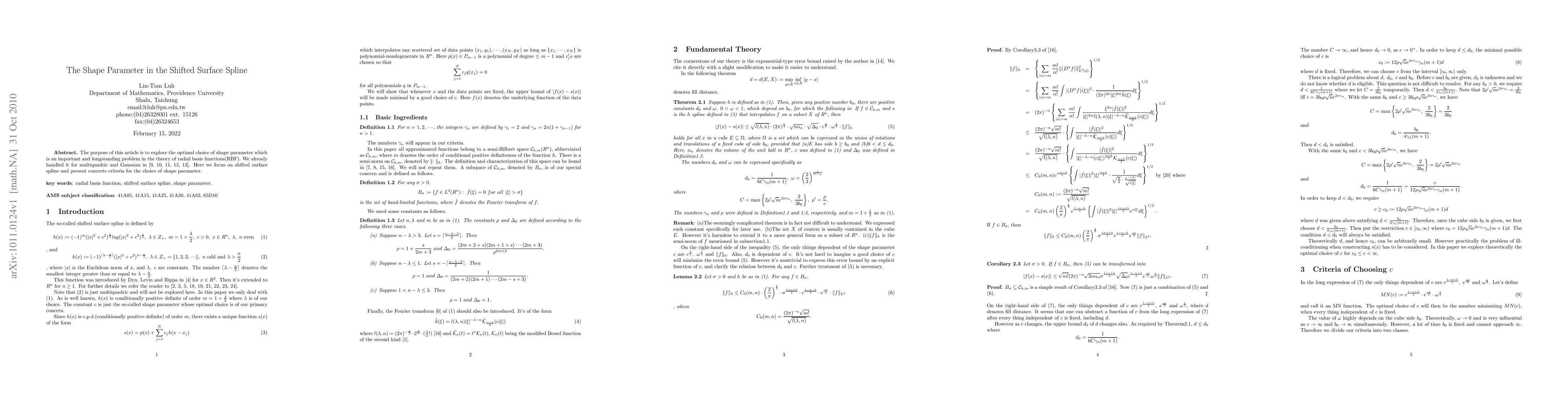 There is a constant c contained in the famous radial basis function shifted surface spline. It's called shape parameter. RBF people only know that this constant is very influential, while its optimal choice is unknown. This paper presents criteria of its optimal choice.