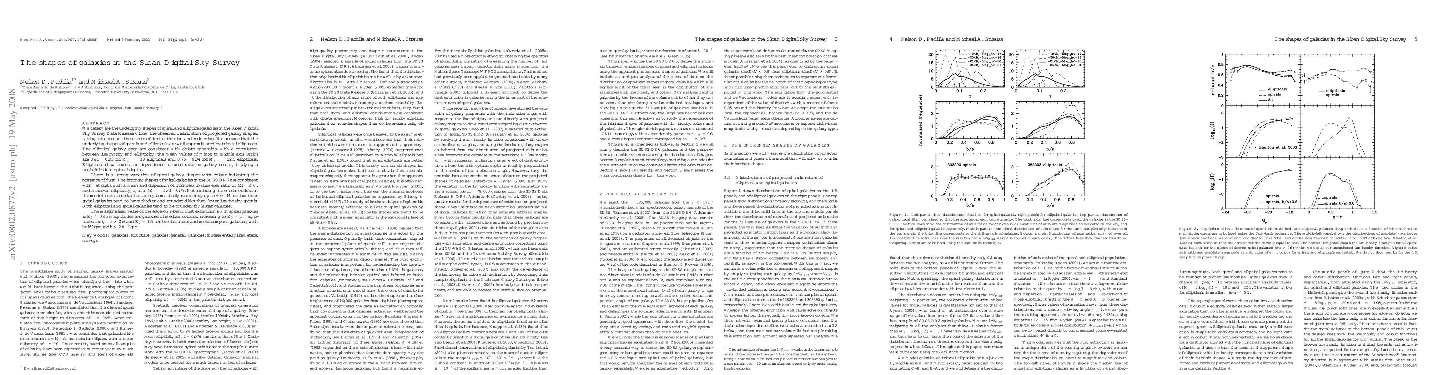 This study examines the intrinsic shapes of spiral and elliptical galaxies in the Sloan Digital Sky Survey, revealing that elliptical galaxies are oblate spheroids with luminosity-dependent ellipticity. Spiral galaxies show significant shape variation with color, indicating dust presence, and are modeled as flat disks with a thickness-to-diameter ratio of (21±2)%.