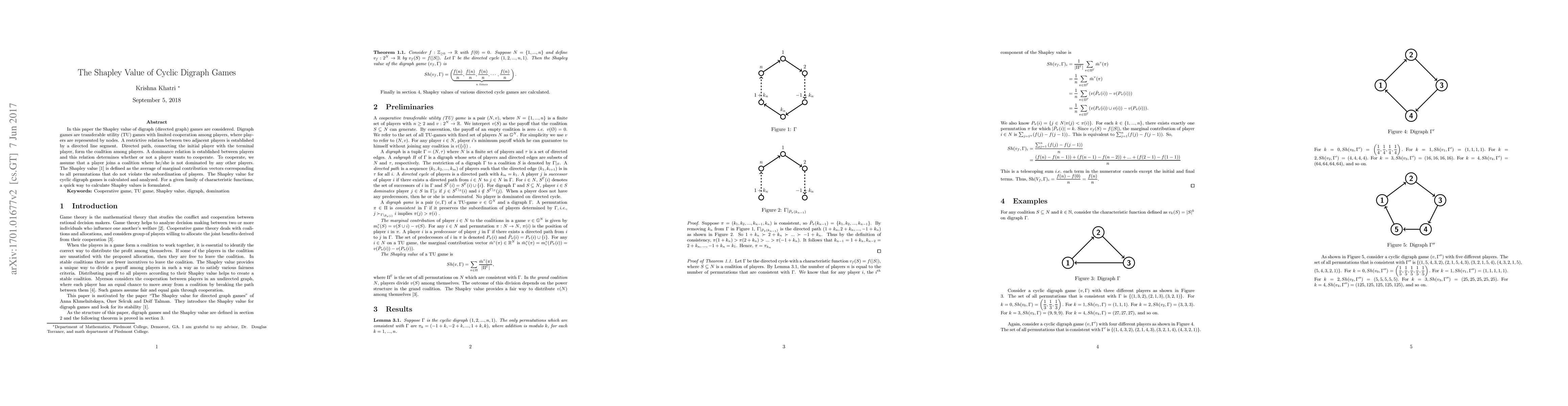 This paper explores the Shapley value for digraph games, focusing on transferable utility games with limited cooperation where players are represented by nodes and directed paths form coalitions. It calculates and analyzes the Shapley value for cyclic digraph games and provides a method for efficiently determining these values.