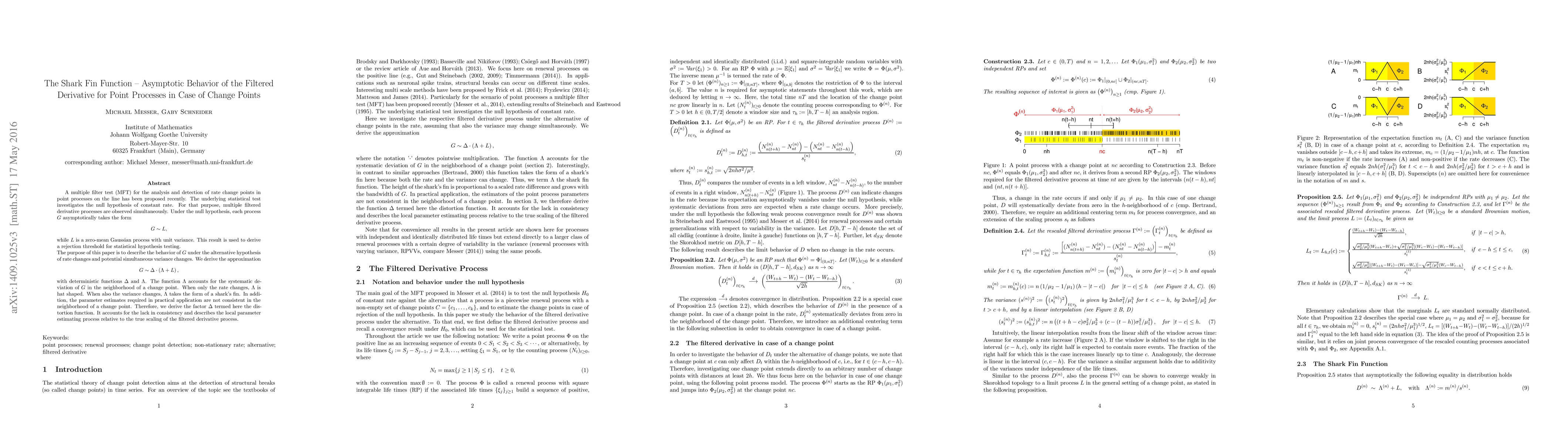 A multiple filter test (MFT) for the analysis and detection of rate change points in point processes on the line has been proposed recently. The underlying statistical test investigates the null hypothesis of constant rate. For that purpose, multiple filtered derivative processes are observed simultaneously. Under the null hypothesis, each process $G$ asymptotically takes the form \begin{align*} G \sim L, \end{align*} while $L$ is a zero-mean Gaussian process with unit variance. This result is used to derive a rejection threshold for statistical hypothesis testing. The purpose of this paper is to describe the behavior of $G$ under the alternative hypothesis of rate changes and potential simultaneous variance changes. We derive the approximation \begin{align*} G \sim \Delta \cdot\left(\Lambda + L\right), \end{align*} with deterministic functions $\Delta$ and $\Lambda$. The function $\Lambda$ accounts for the systematic deviation of $G$ in the neighborhood of a change point. When only the rate changes, $\Lambda$ is hat shaped. When also the variance changes, $\Lambda$ takes the form of a shark's fin. In addition, the parameter estimates required in practical application are not consistent in the neighborhood of a change point. Therefore, we derive the factor $\Delta$ termed here the distortion function. It accounts for the lack in consistency and describes the local parameter estimating process relative to the true scaling of the filtered derivative process.