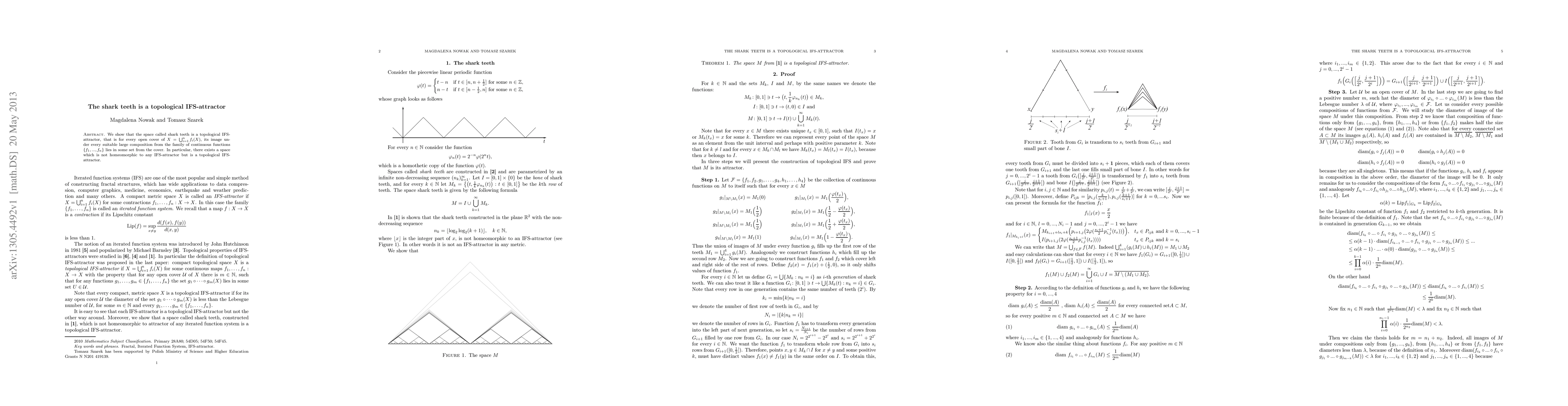 This paper demonstrates that the shark teeth fractal is a topological IFS-attractor, meaning it satisfies the IFS-attractor property under suitable compositions of continuous functions. It also highlights the existence of a space that is a topological IFS-attractor but not homeomorphic to any standard IFS-attractor.
