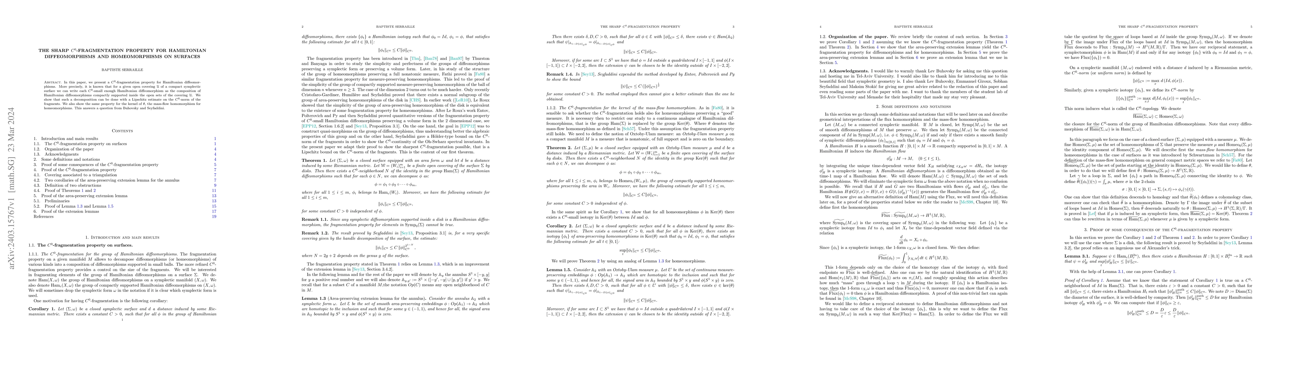 In this paper, we present a $C^0$-fragmentation property for Hamiltonian diffeomorphisms. More precisely, it is known that for a given open covering $\mathcal{U}$ of a compact symplectic surface we can write each $C^0$-small enough Hamiltonian diffeomorphism as the composition of Hamiltonian diffeomorphisms compactly supported inside the open sets of the covering $\mathcal{U}$. We show that such a decomposition can be done with a Lipschitz estimate on the $C^0$-norm of the fragments. We also show the same property for the kernel of $\theta$, the mass-flow homomorphism for homeomorphisms. This answers a question from Buhovsky and Seyfaddini.