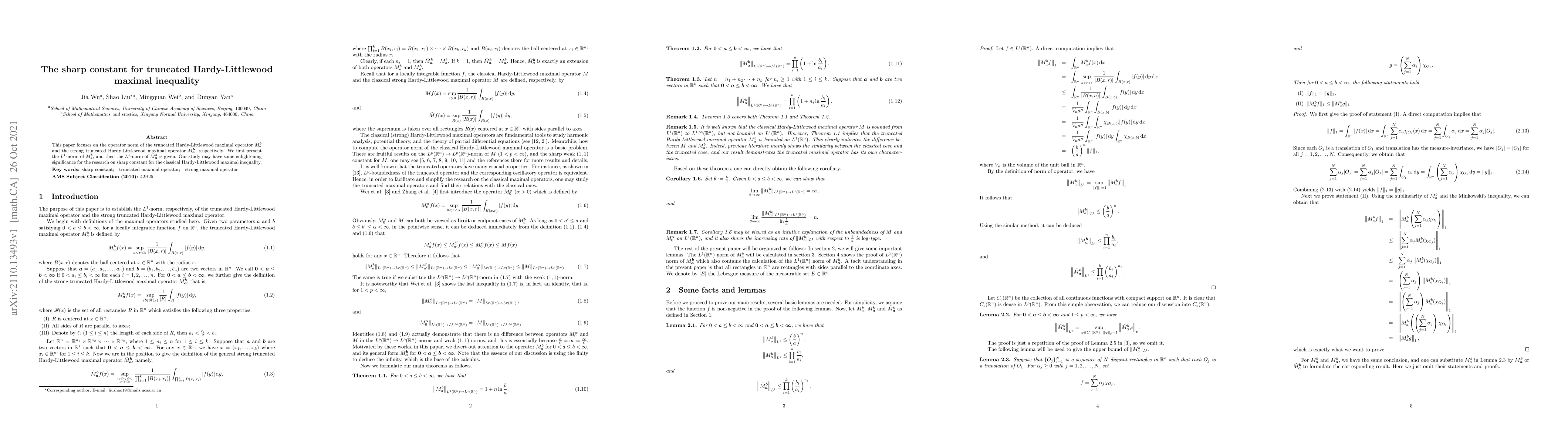 This paper determines the optimal constants for the truncated Hardy-Littlewood maximal operators $M^b_a$ and $\tilde{M}^{\boldsymbol{b}}_{\boldsymbol{a}}$, providing insights into the $L^1$-norms and potentially advancing research on the classical Hardy-Littlewood maximal inequality.