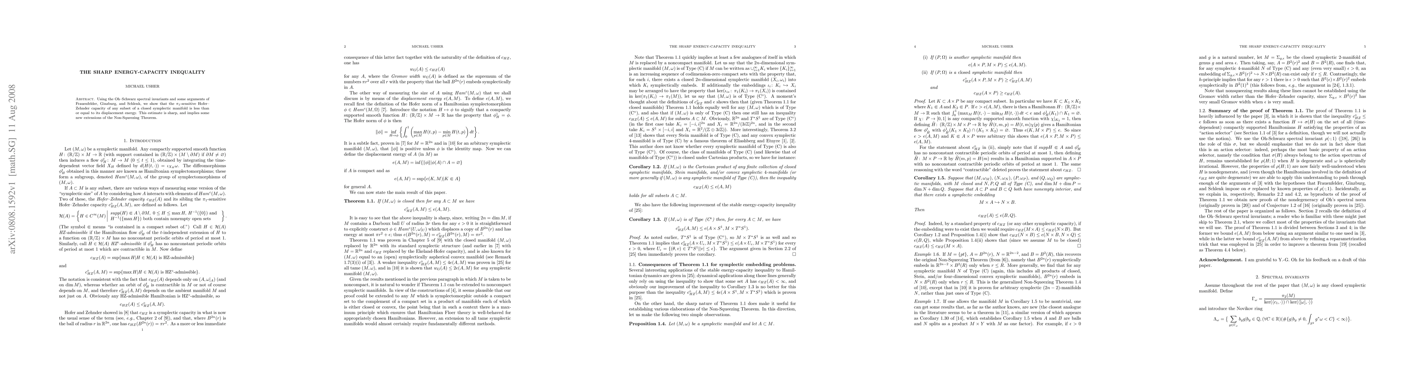 Researchers prove that a symplectic manifold's energy capacity is less than or equal to its displacement energy, with equality possible only for certain subsets.