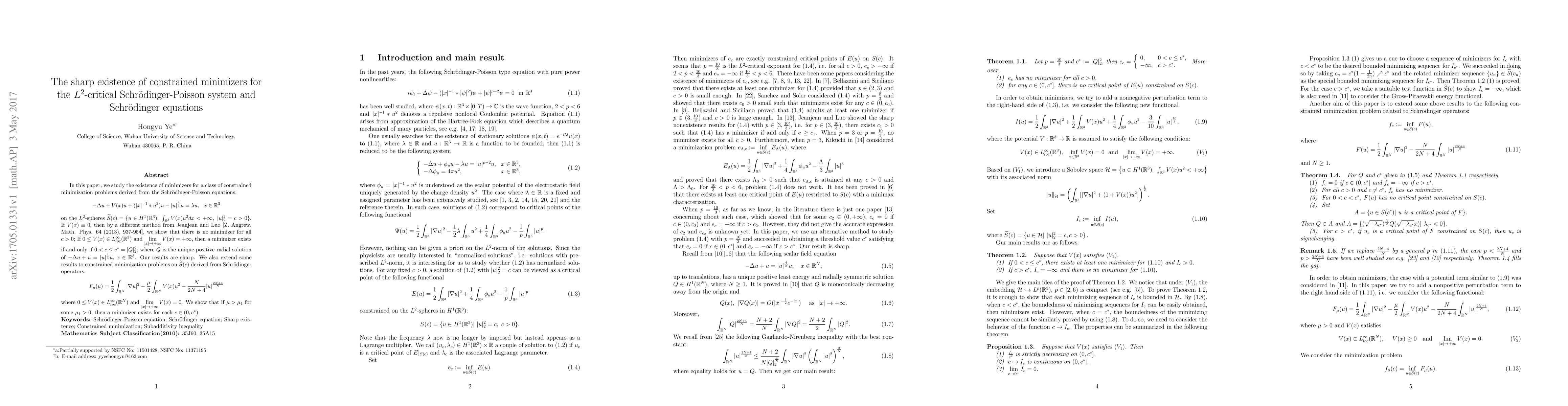 H^1(\R^3)|~\int_{\R^3}V(x)u^2dx<+\infty,~|u|_2^2=c>0\}$. If $V(x)\equiv0$, then