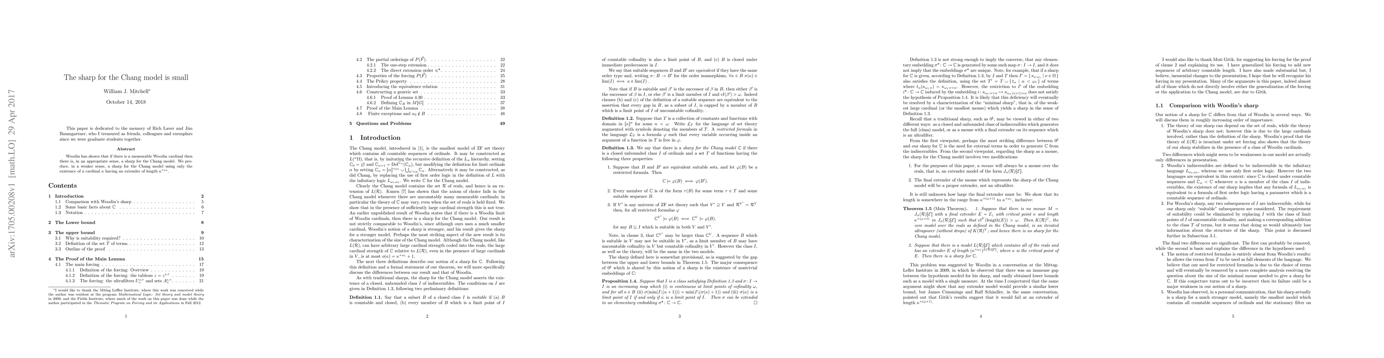 Woodin has shown that if there is a measurable Woodin cardinal then there is, in an appropriate sense, a sharp for the Chang model. We produce, in a weaker sense, a sharp for the Chang model using only the existence of a cardinal $\kappa$ having an extender of length $\kappa^{+\omega_1}$.