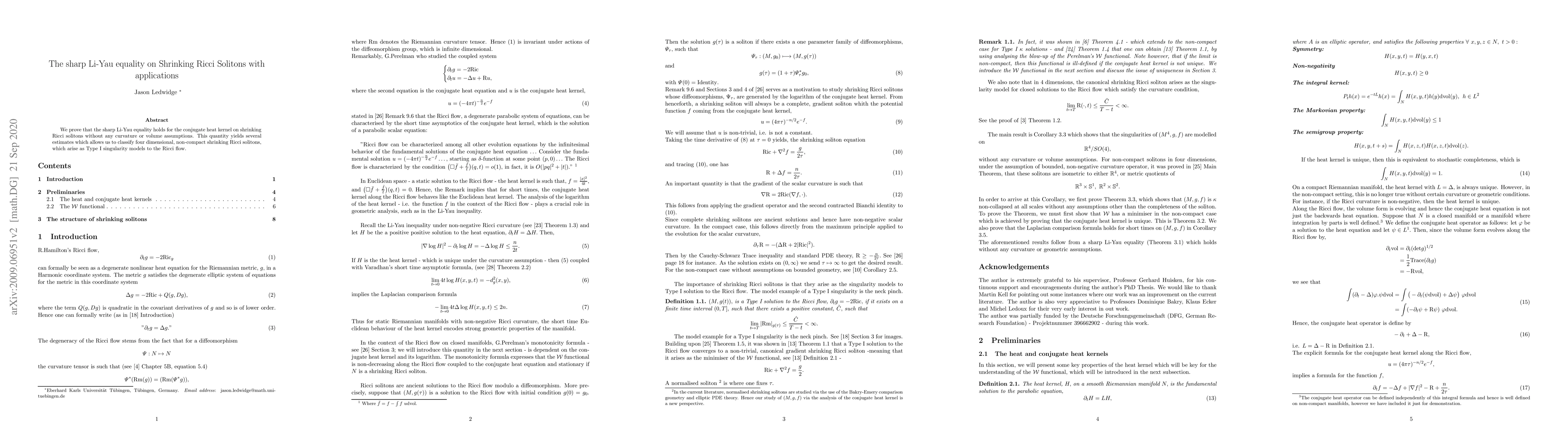 Summary: The paper proves the sharp Li-Yau equality for the conjugate heat kernel on shrinking Ricci solitons, leading to classifications of four-dimensional, non-compact solitons that model Type I singularities in the Ricci flow.