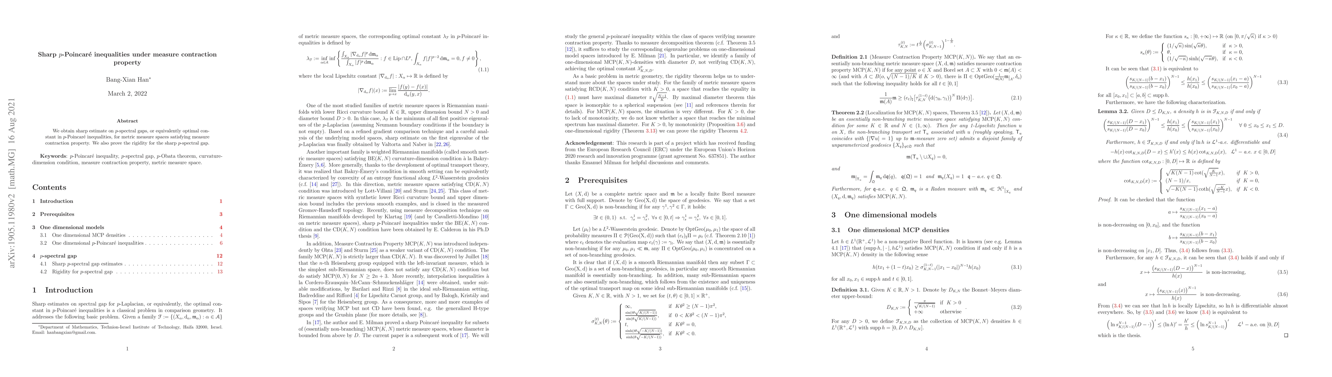 This paper establishes a sharp estimate for $p$-spectral gaps in metric measure spaces with the measure contraction property and proves the rigidity associated with the optimal $p$-Poincaré inequality.