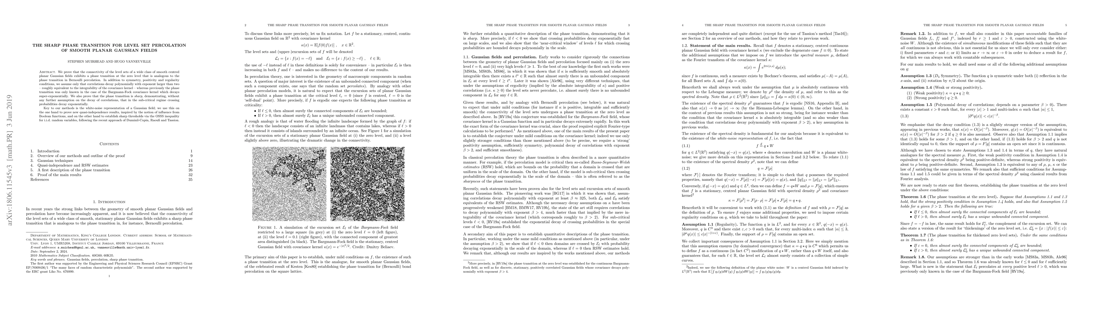 This work advances the understanding of phase transitions in statistical physics models by relaxing stringent conditions, making the results applicable to a broader class of Gaussian fields, and has implications for percolation theory and stochastic geometry.