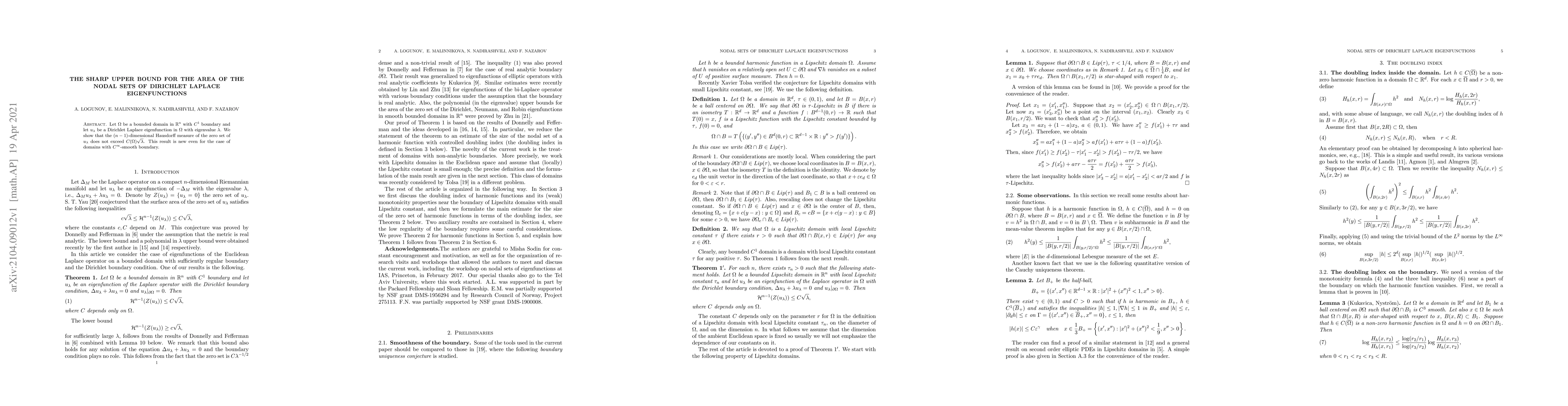 Research finds that the area of zero sets for Dirichlet Laplace eigenfunctions in a bounded domain is bounded by C(Omega) times the square root of the eigenvalue, providing new insights into nodal sets.