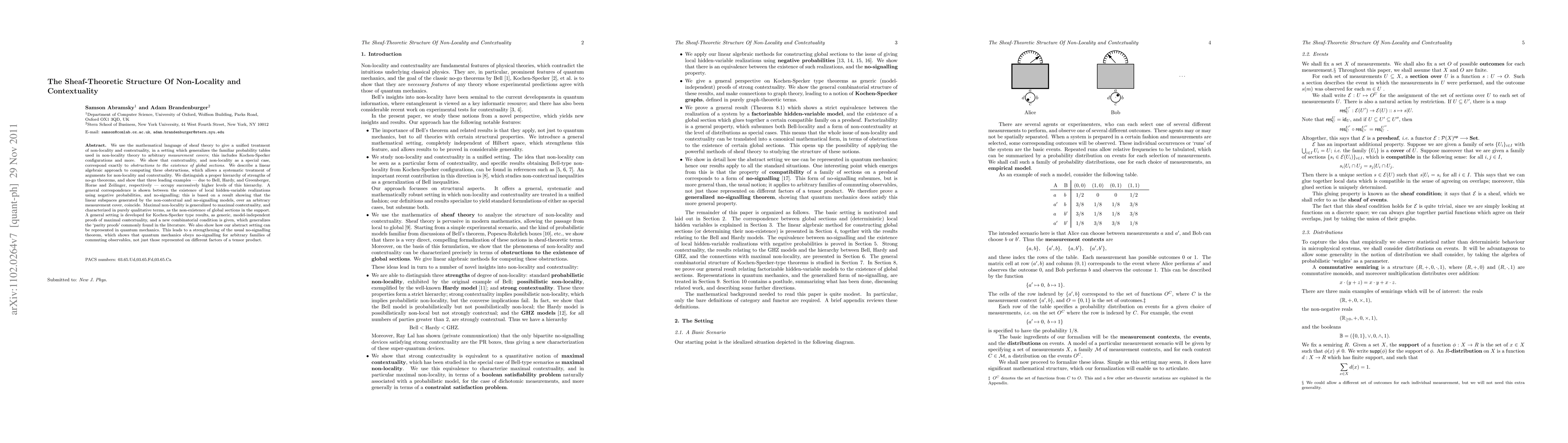 This paper employs sheaf theory to unify non-locality and contextuality in quantum mechanics, showing that these phenomena correspond to obstructions to the existence of global sections. It develops a linear algebraic method for computing these obstructions, categorizes no-go theorems by strength, and establishes a correspondence between local hidden-variable models and no-signalling.