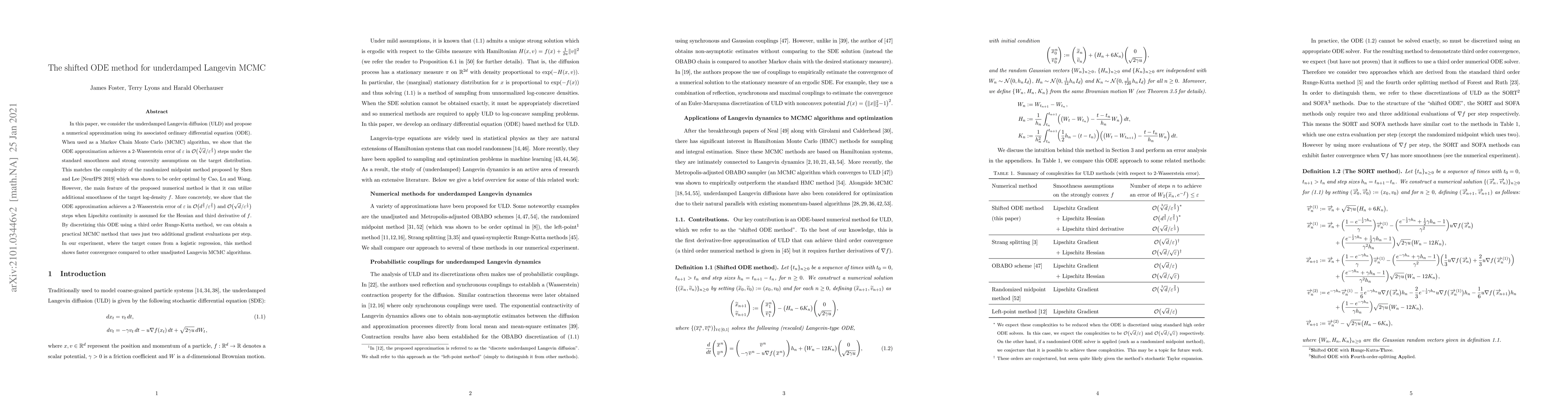 This paper proposes an ODE approximation of the underdamped Langevin diffusion for MCMC, achieving optimal convergence rates under standard assumptions. It demonstrates improved efficiency by leveraging additional smoothness of the target log-density, requiring fewer steps for better accuracy, and shows faster convergence in experiments compared to other MCMC methods.