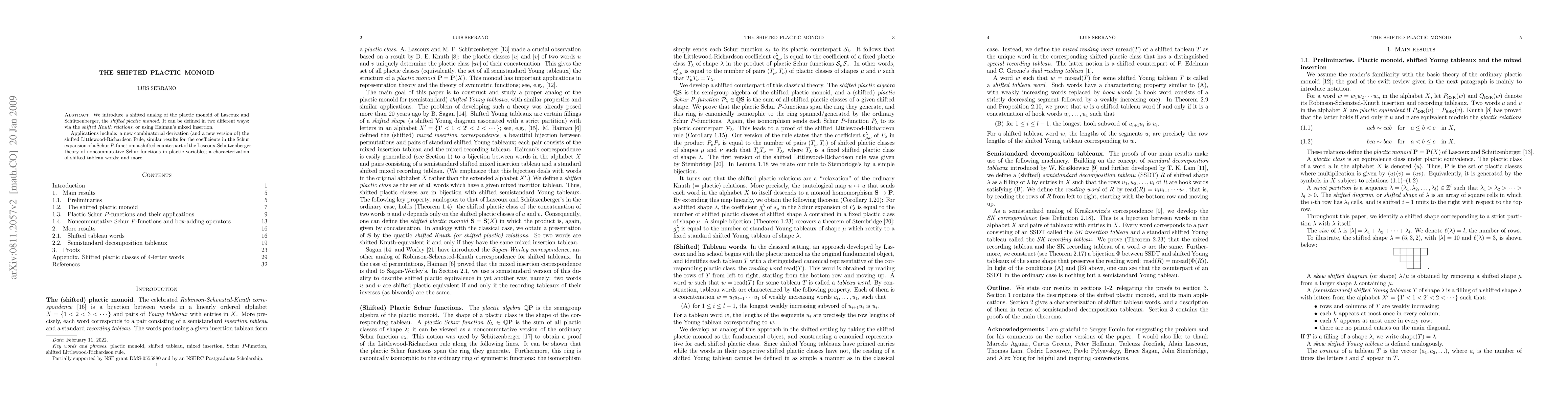 The paper introduces the shifted plactic monoid, defined via shifted Knuth relations or Haiman's mixed insertion, and explores its applications including a new version of the shifted Littlewood-Richardson Rule and a characterization of shifted tableau words.