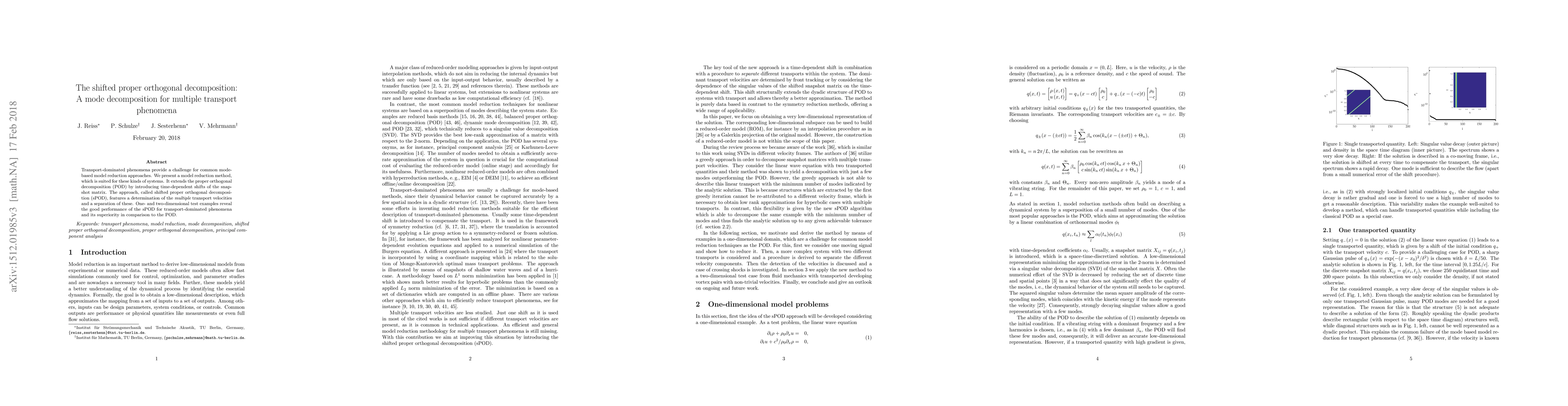The shifted proper orthogonal decomposition (sPOD) method extends traditional POD to model reduction for transport-dominated systems by introducing time-dependent shifts, enabling the determination and separation of multiple transport velocities. Test examples demonstrate sPOD's superior performance over standard POD for such phenomena.