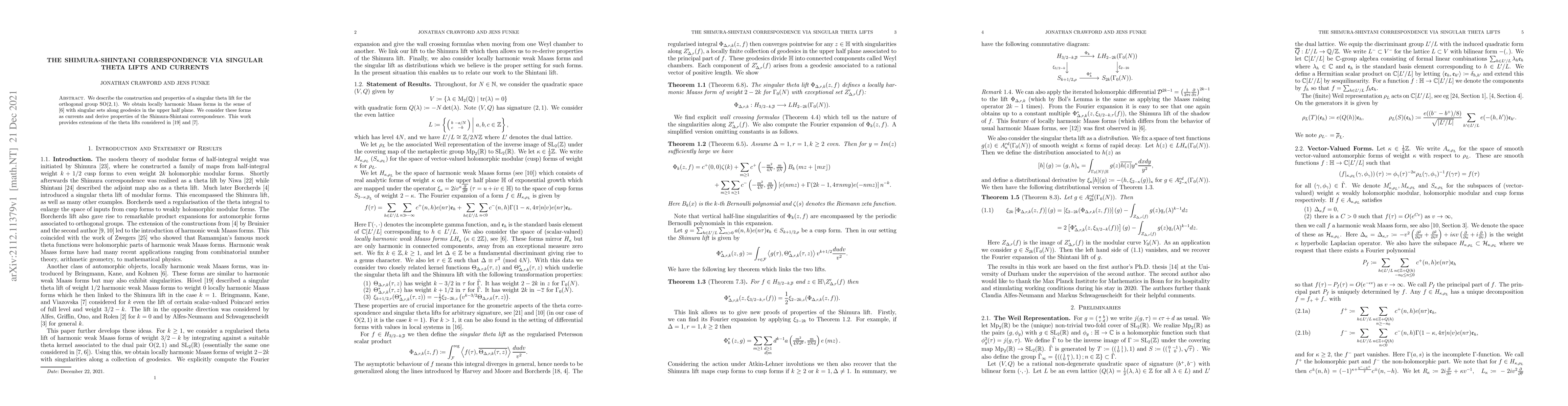 This paper constructs singular theta lifts for the orthogonal group $\SO(2,1)$ and obtains locally harmonic Maass forms, considering them as currents to derive properties of the Shimura-Shintani correspondence, extending prior work by Hoevel and Bringmann-Kane-Viazovska.