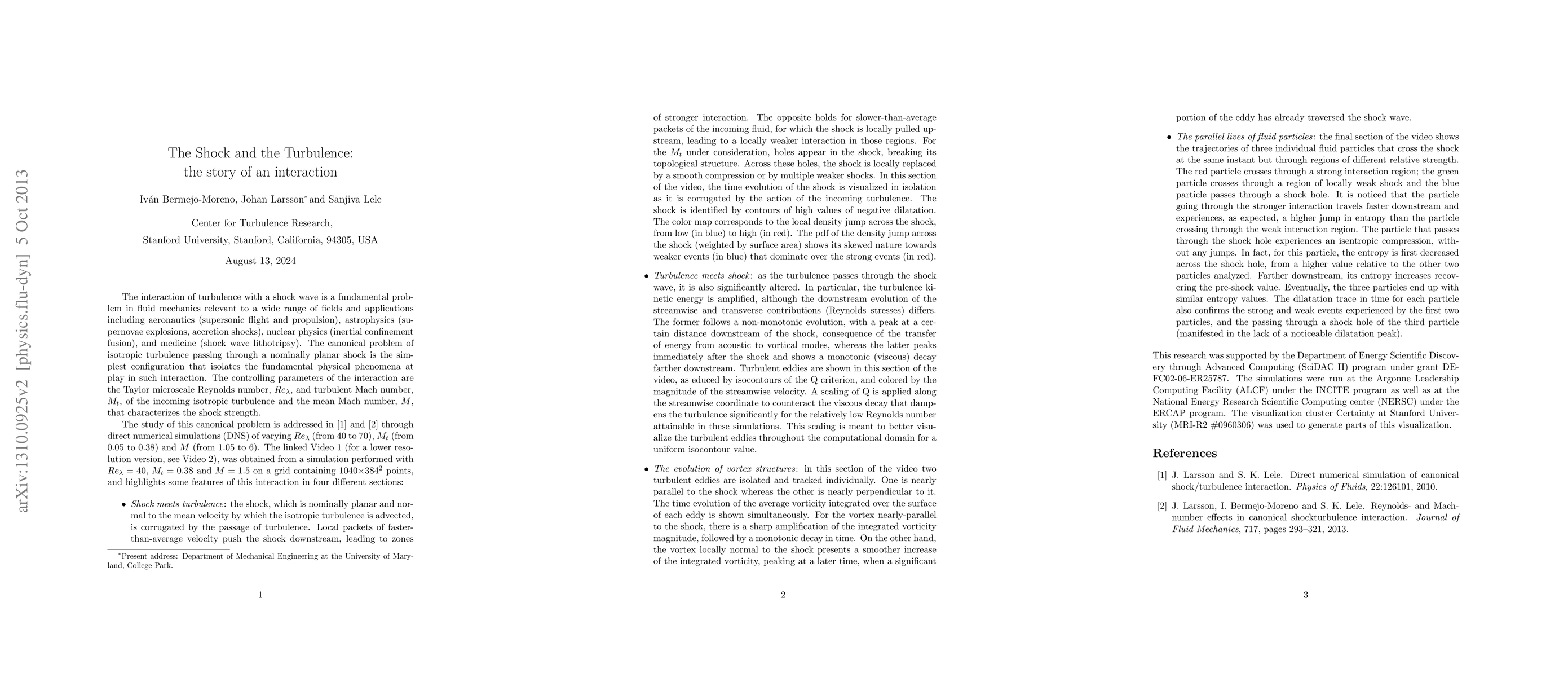 Video highlighting multiple features of the interaction between isotropic turbulence and a nominally planar shock wave, normal to the mean flow direction. The visualizations showcased in this video were obtained from a Direct Numerical Simulation.