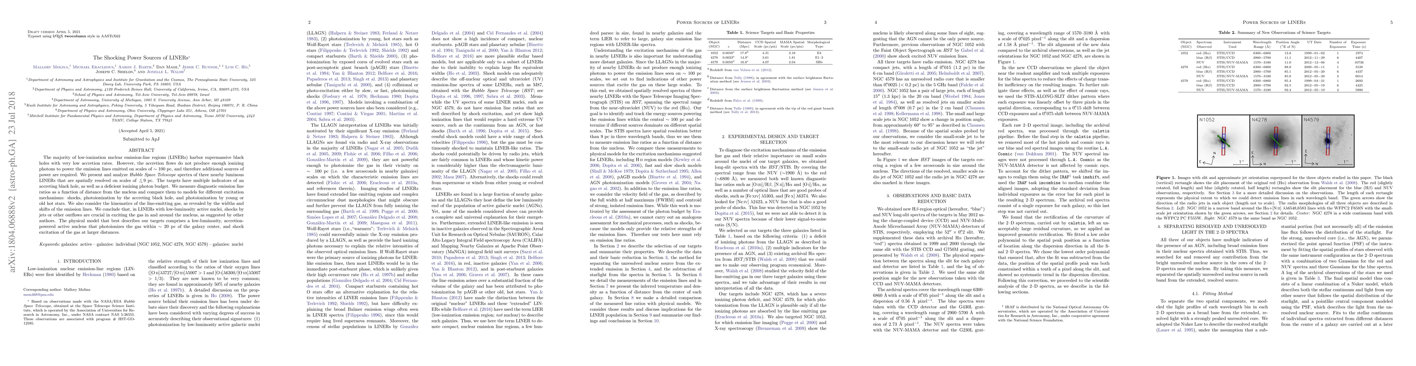 The study suggests a new model for LINERs, where a low-luminosity active nucleus photoionizes gas within 20 pc of the galaxy center, while shock excitation powers the emission at larger distances.