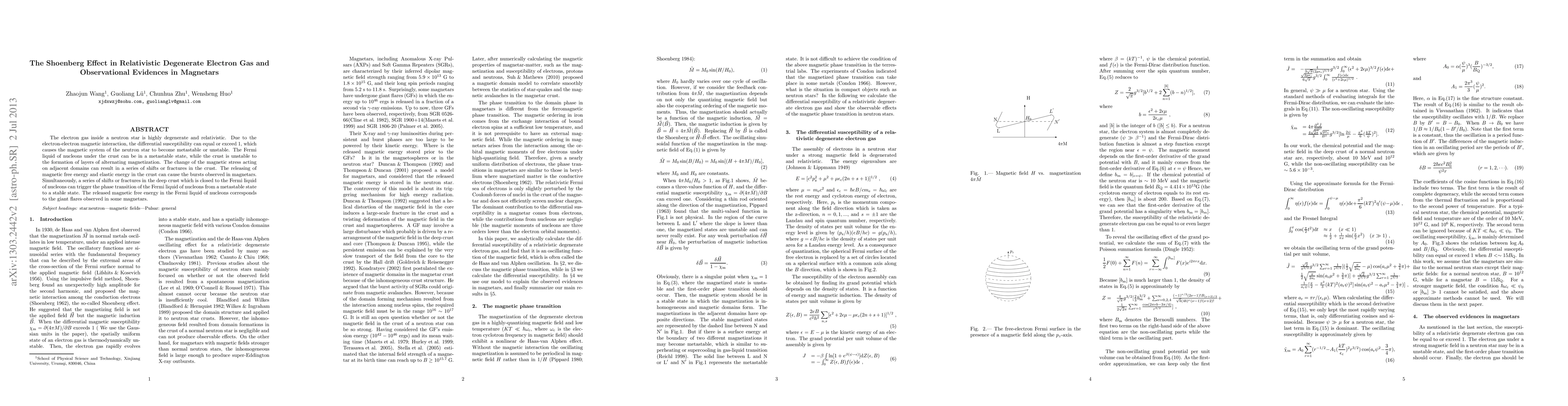 The electron gas inside a neutron star is highly degenerate and relativistic. Due to the electron-electron magnetic interaction, the differential susceptibility can equal or exceed 1, which causes the magnetic system of the neutron star to become metastable or unstable. The Fermi liquid of nucleons under the crust can be in a metastable state, while the crust is unstable to the formation of layers of alternating magnetization. The change of the magnetic stress acting on adjacent domains can result in a series of shifts or fractures in the crust. The releasing of magnetic free energy and elastic energy in the crust can cause the bursts observed in magnetars. Simultaneously, a series of shifts or fractures in the deep crust which is closed to the Fermi liquid of nucleons can trigger the phase transition of the Fermi liquid of nucleons from a metastable state to a stable state. The released magnetic free energy in the Fermi liquid of nucleons corresponds to the giant flares observed in some magnetars.