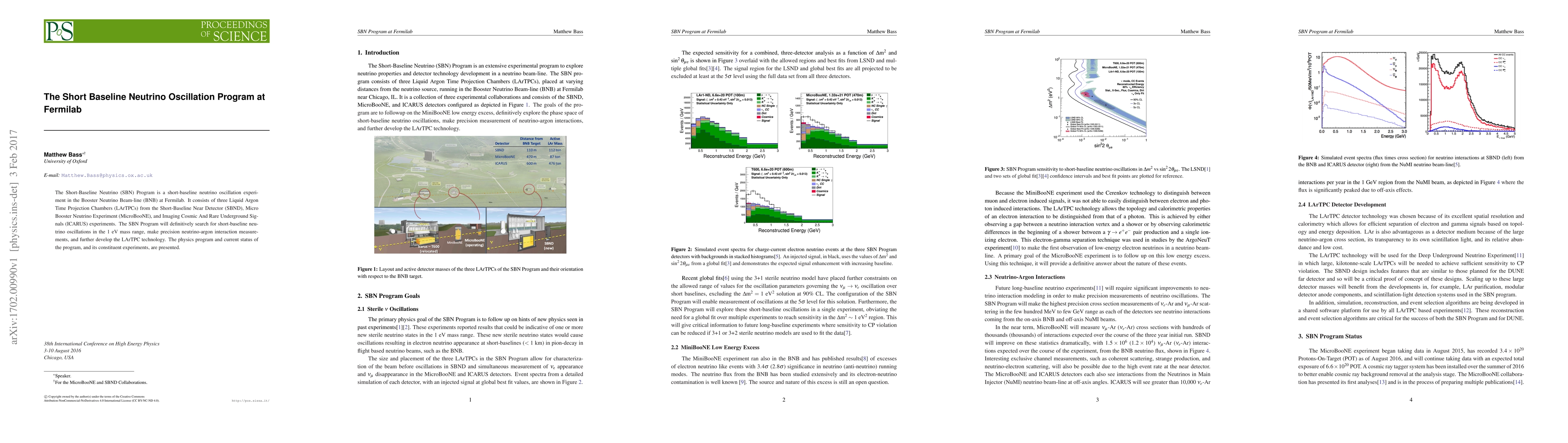 The Short Baseline Neutrino Program at Fermilab employs three Liquid Argon Time Projection Chambers to search for short-baseline neutrino oscillations, aiming to explore the 1 eV mass range and enhance LArTPC technology while making precise neutrino-argon interaction measurements. The current status and physics goals of the program are detailed.